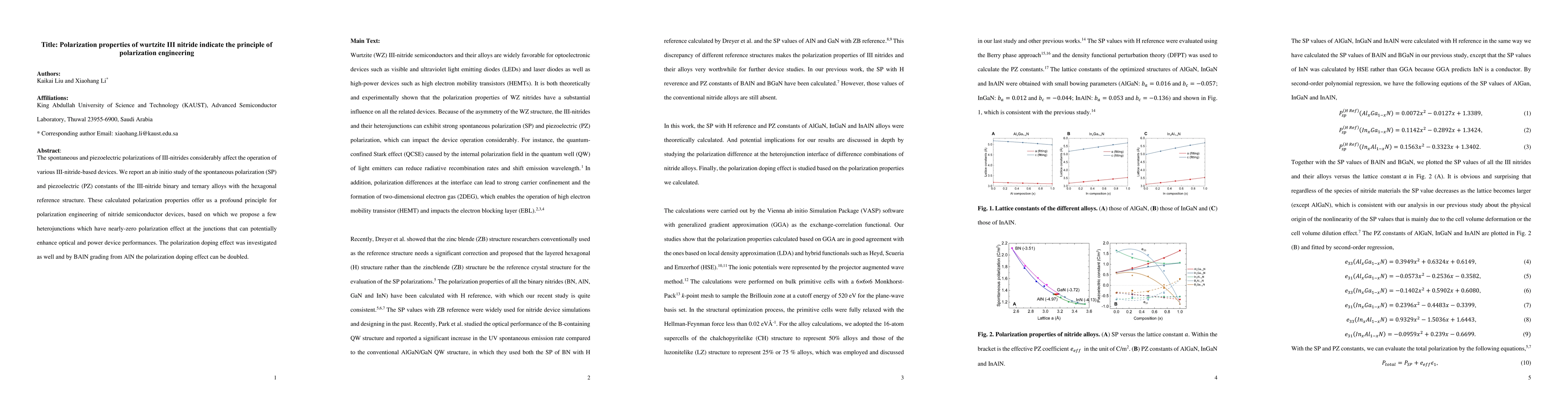 This study explores the polarization properties of wurtzite III nitrides, revealing insights into spontaneous and piezoelectric polarizations. The findings propose heterojunctions with minimal polarization effects to enhance device performance, and suggest that BAlN grading can double the polarization doping effect.