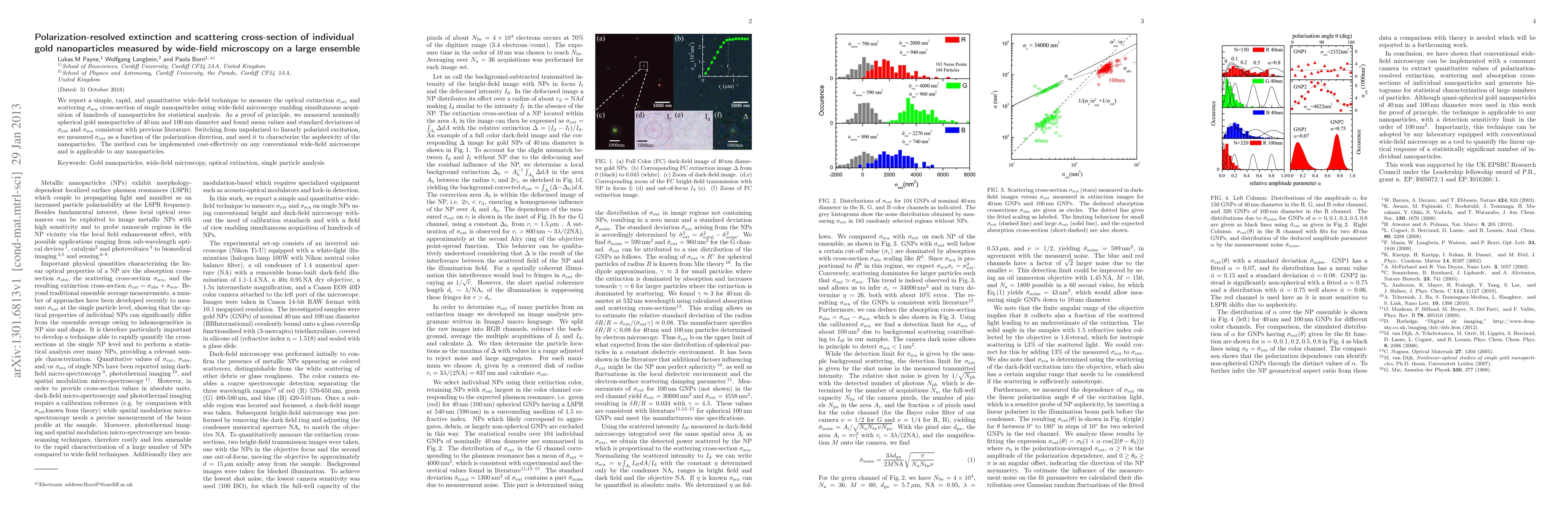 This paper presents a wide-field microscopy technique for measuring the extinction and scattering cross-sections of individual gold nanoparticles, enabling statistical analysis on large ensembles. The method also characterizes nanoparticle asphericity through polarization-resolved extinction measurements.