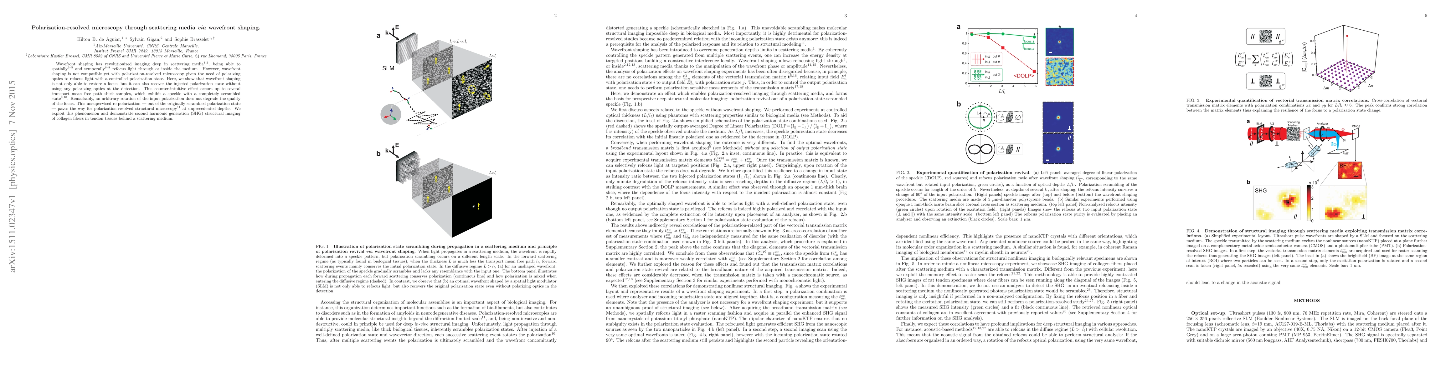 This paper demonstrates that wavefront shaping can restore focus in scattering media while recovering the original polarization state without polarizing optics, enabling polarization-resolved microscopy at unprecedented depths. This breakthrough allows for second harmonic generation imaging of collagen fibers in tendon tissues behind scattering media.