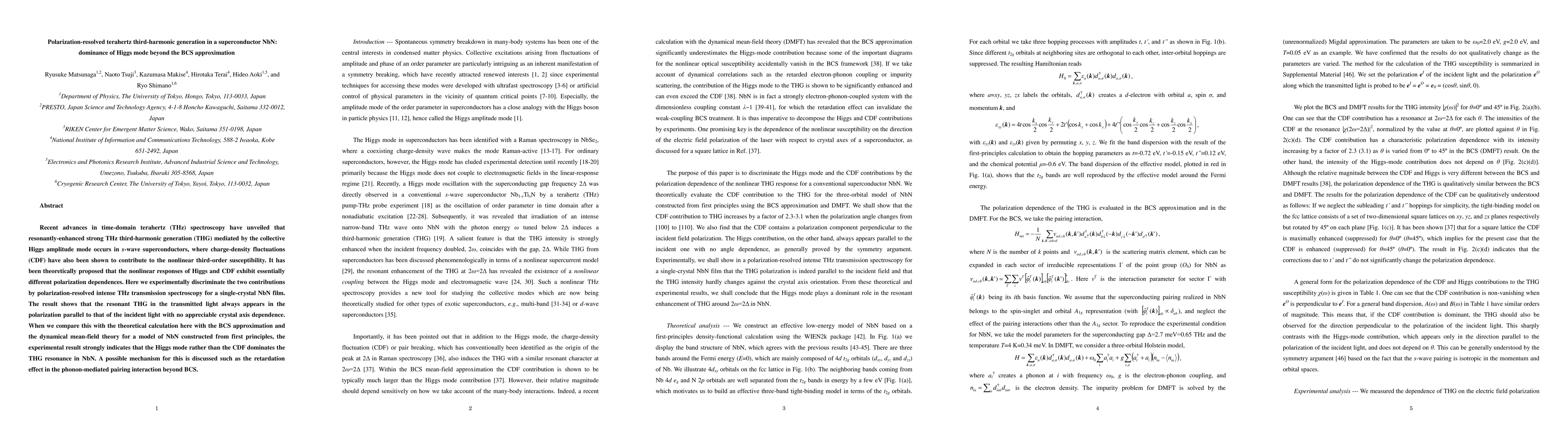 This paper investigates the polarization-resolved terahertz third-harmonic generation in NbN superconductors, revealing that the Higgs mode dominates over charge-density fluctuations, challenging the BCS approximation. Experimental results show that the THG resonance aligns with the polarization of the incident light, indicating the Higgs mode's dominance.