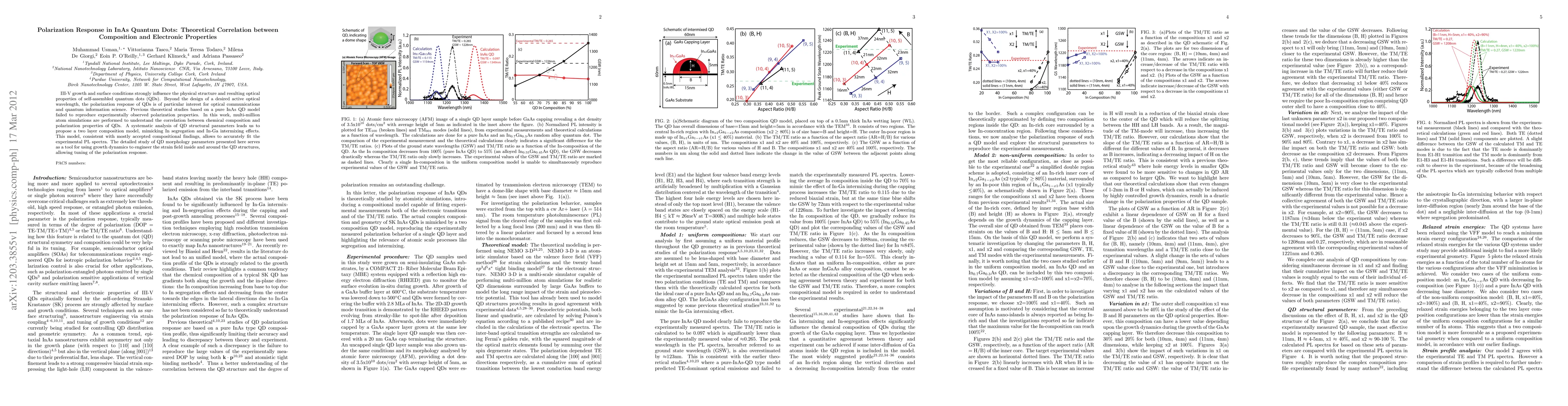 III-V growth and surface conditions strongly influence the physical structure and resulting optical properties of self-assembled quantum dots (QDs). Beyond the design of a desired active optical wavelength, the polarization response of QDs is of particular interest for optical communications and quantum information science. Previous theoretical studies based on a pure InAs QD model failed to reproduce experimentally observed polarization properties. In this work, multi-million atom simulations are performed to understand the correlation between chemical composition and polarization properties of QDs. A systematic analysis of QD structural parameters leads us to propose a two layer composition model, mimicking In segregation and In-Ga intermixing effects. This model, consistent with mostly accepted compositional findings, allows to accurately fit the experimental PL spectra. The detailed study of QD morphology parameters presented here serves as a tool for using growth dynamics to engineer the strain field inside and around the QD structures, allowing tuning of the polarization response.
