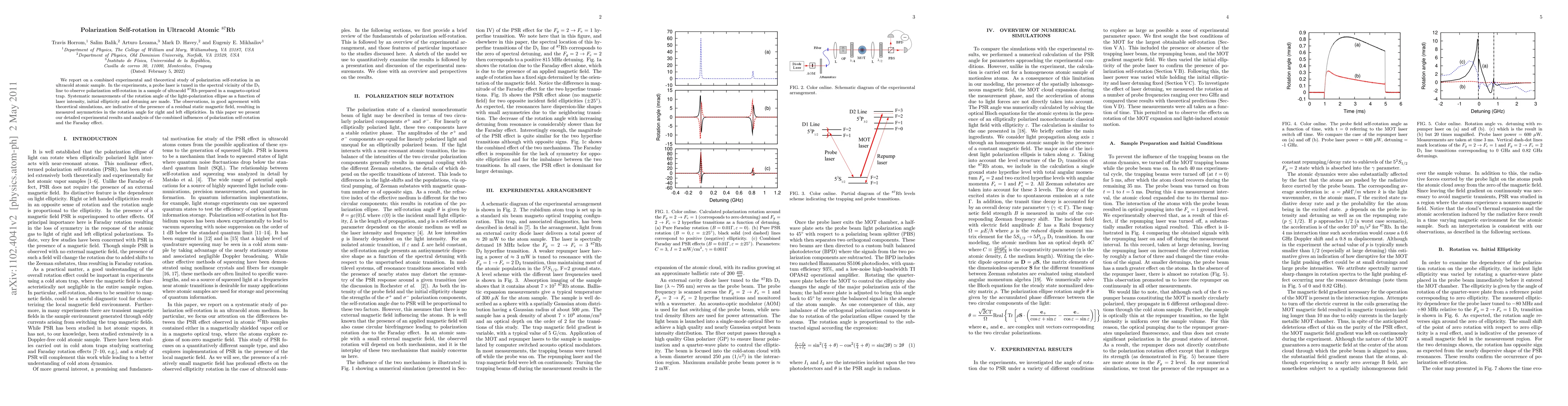 Researchers observed polarization self-rotation in ultracold Rb atoms using a probe laser, finding evidence of a residual static magnetic field causing asymmetries in rotation angle for different ellipticities.