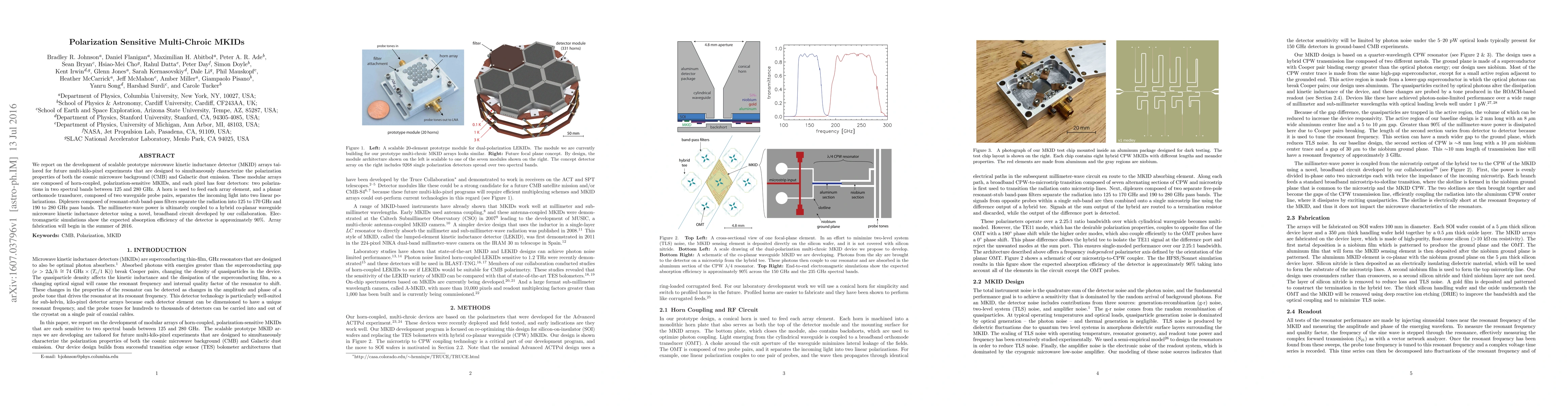 We report on the development of scalable prototype microwave kinetic inductance detector (MKID) arrays tailored for future multi-kilo-pixel experiments that are designed to simultaneously characterize the polarization properties of both the cosmic microwave background (CMB) and Galactic dust emission. These modular arrays are composed of horn-coupled, polarization-sensitive MKIDs, and each pixel has four detectors: two polarizations in two spectral bands between 125 and 280 GHz. A horn is used to feed each array element, and a planar orthomode transducer, composed of two waveguide probe pairs, separates the incoming light into two linear polarizations. Diplexers composed of resonant-stub band-pass filters separate the radiation into 125 to 170 GHz and 190 to 280 GHz pass bands. The millimeter-wave power is ultimately coupled to a hybrid co-planar waveguide microwave kinetic inductance detector using a novel, broadband circuit developed by our collaboration. Electromagnetic simulations show the expected absorption efficiency of the detector is approximately 90%. Array fabrication will begin in the summer of 2016.