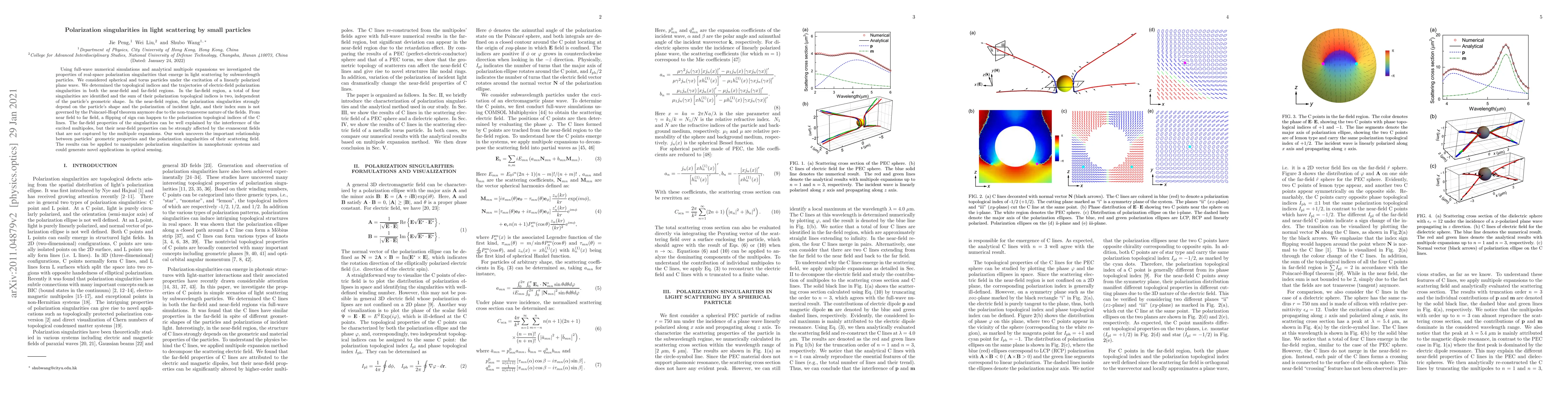 This paper investigates the polarization singularities in light scattering by subwavelength particles using simulations and analytical methods. It finds that four singularities with a combined topological index of two occur in the far-field, regardless of particle shape, while near-field singularities are highly dependent on particle geometry and incident light polarization.