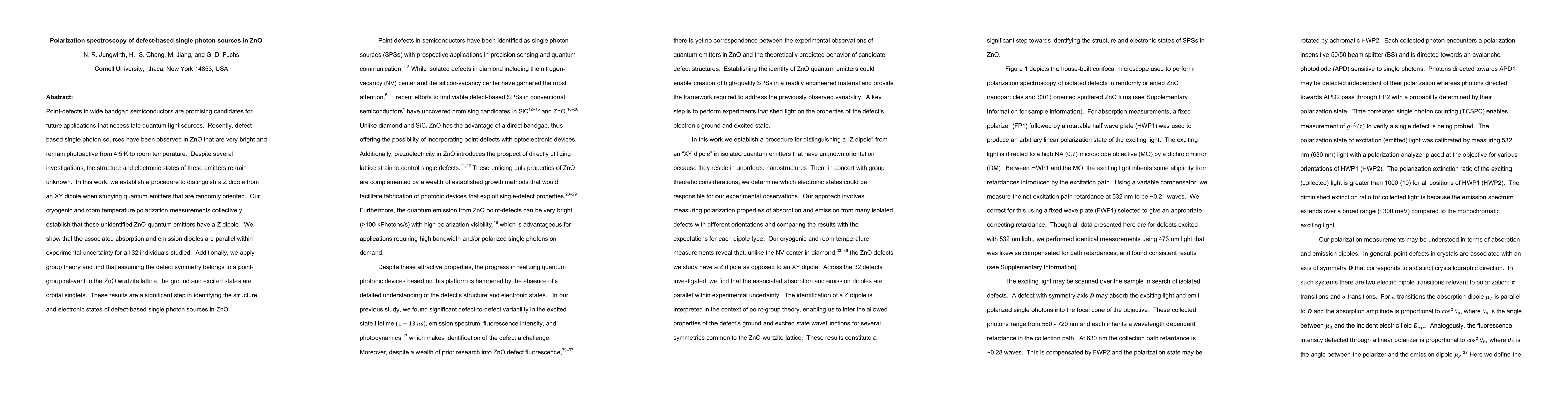 Point-defects in wide bandgap semiconductors are promising candidates for future applications that necessitate quantum light sources. Recently, defect-based single photon sources have been observed in ZnO that are very bright and remain photoactive from 4.5 K to room temperature. Despite several investigations, the structure and electronic states of these emitters remain unknown. In this work, we establish a procedure to distinguish a Z dipole from an XY dipole when studying quantum emitters that are randomly oriented. Our cryogenic and room temperature polarization measurements collectively establish that these unidentified ZnO quantum emitters have a Z dipole. We show that the associated absorption and emission dipoles are parallel within experimental uncertainty for all 32 individuals studied. Additionally, we apply group theory and find that assuming the defect symmetry belongs to a point-group relevant to the ZnO wurtzite lattice, the ground and excited states are orbital singlets. These results are a significant step in identifying the structure and electronic states of defect-based single photon sources in ZnO.