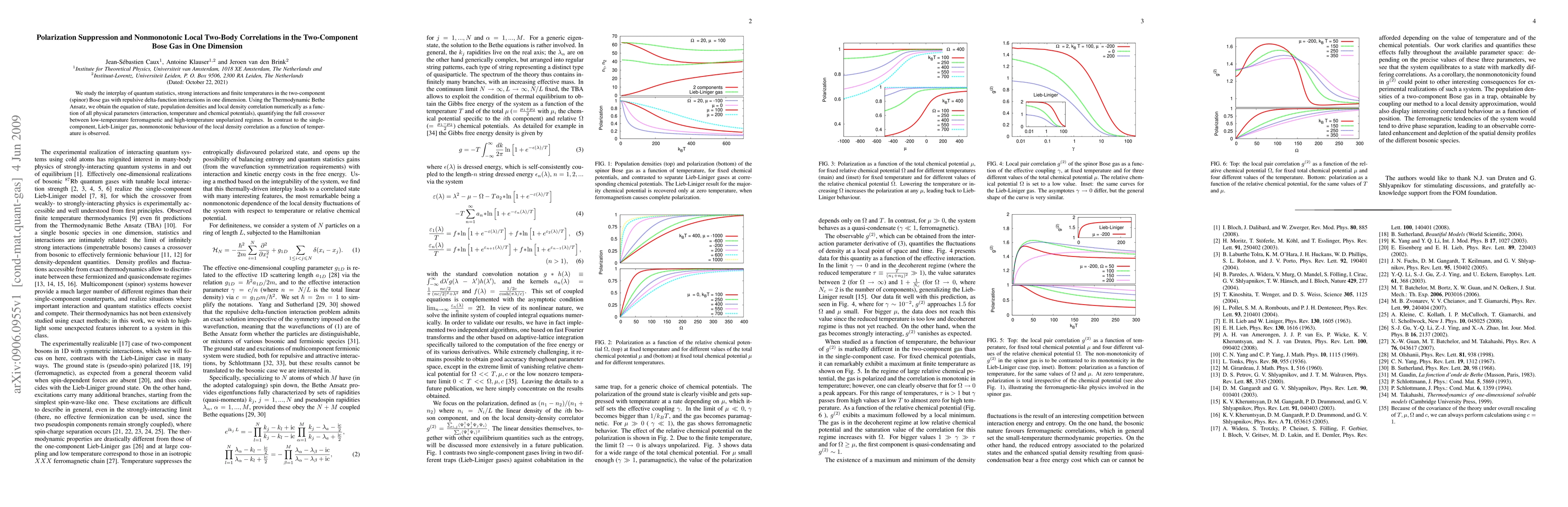 This paper investigates the quantum statistics and strong interactions in a two-component Bose gas in one dimension, revealing nonmonotonic local density correlations and polarization suppression through the Thermodynamic Bethe Ansatz. It quantifies the crossover between ferromagnetic and unpolarized regimes, highlighting unique behaviors compared to the single-component Lieb-Liniger gas.