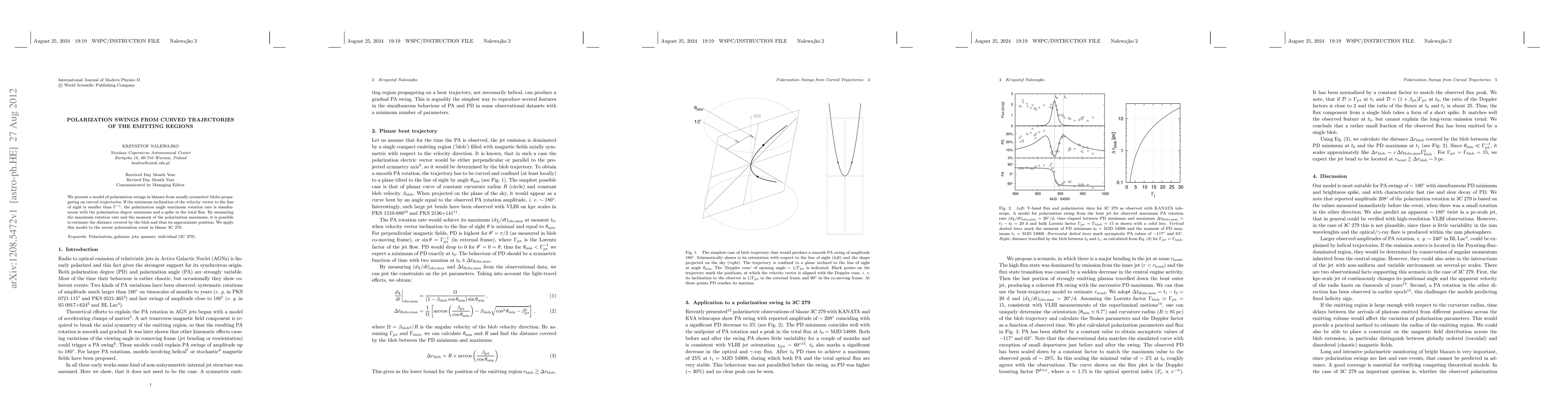 The research uses a model of polarization swings in blazars from axially symmetric blobs propagating on curved trajectories.