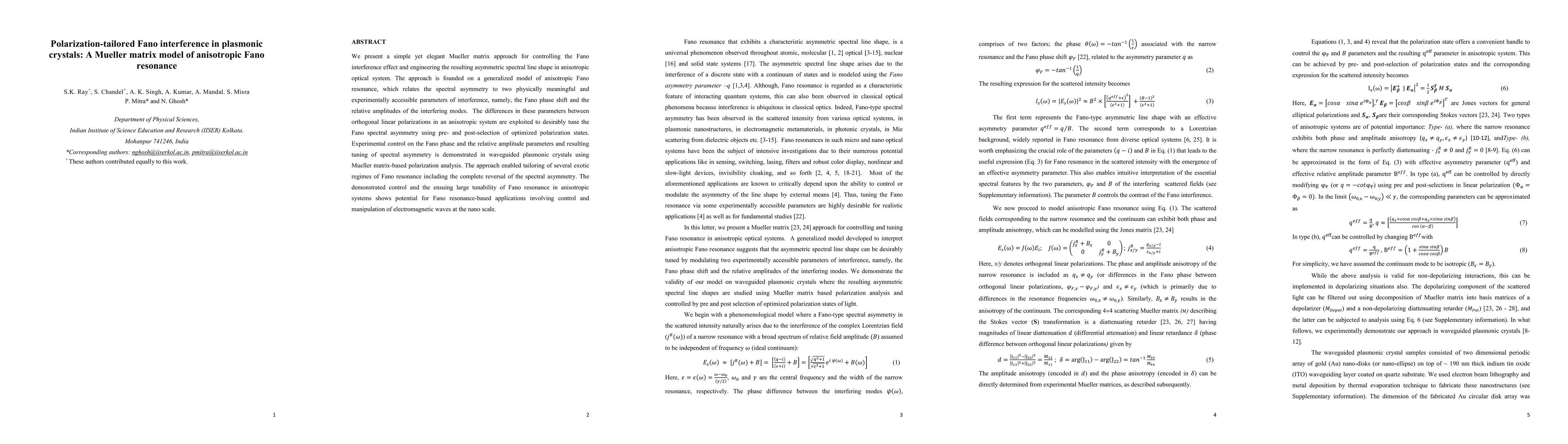 This paper introduces a Mueller matrix model to control Fano interference in anisotropic optical systems, enabling tuning of spectral asymmetry through polarization selection. The model demonstrates significant tunability of Fano resonance in plasmonic crystals, with potential applications in nano-scale electromagnetic wave manipulation.
