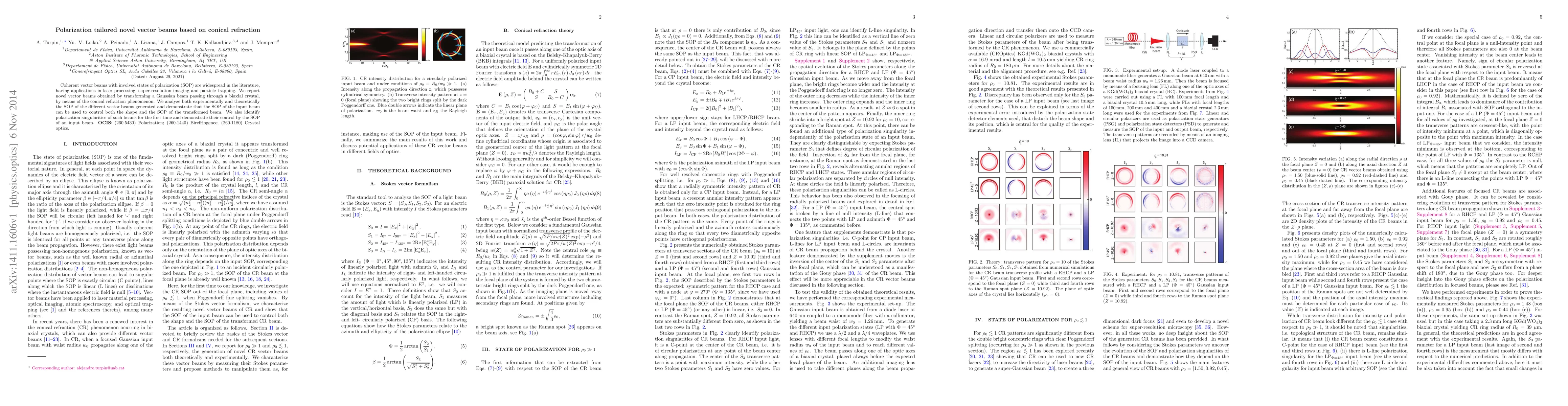Coherent vector beams with involved states of polarization (SOP) are widespread in the literature, having applications in laser processing, super-resolution imaging and particle trapping. We report novel vector beams obtained by transforming a Gaussian beam passing through a biaxial crystal, by means of the conical refraction phenomenon. We analyze both experimentally and theoretically the SOP of the different vector beams generated and demonstrate that the SOP of the input beam can be used to control both the shape and the SOP of the transformed beam. We also identify polarization singularities of such beams for the first time and demonstrate their control by the SOP of an input beam.