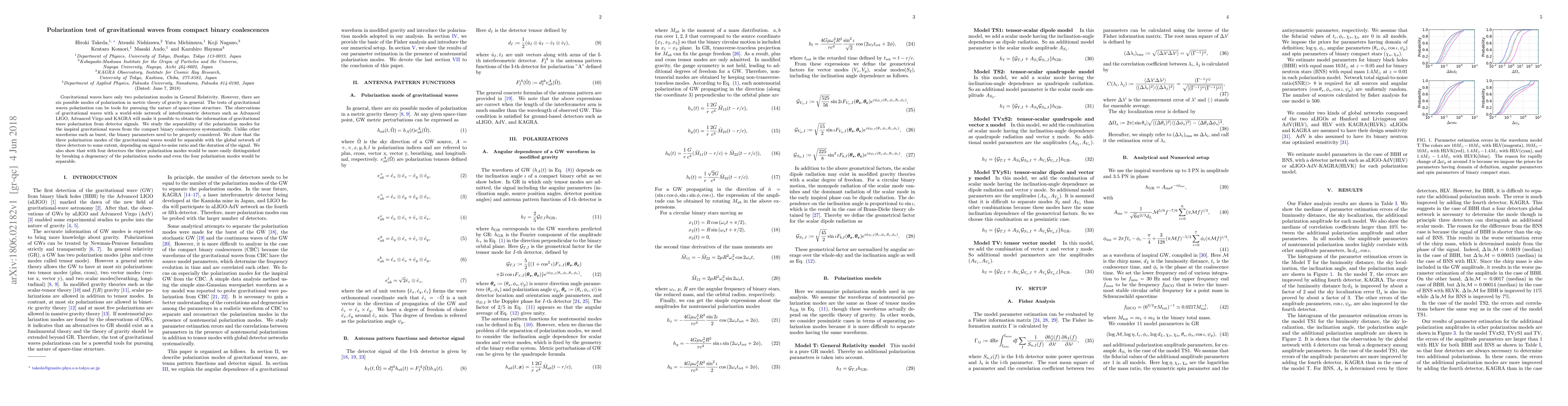 This paper investigates the separability of gravitational wave polarization modes from compact binary coalescences using interferometric detectors. The study finds that three polarization modes can be distinguished with a global network of three detectors, depending on signal-to-noise ratio and signal duration, and that four detectors can more easily distinguish these modes, including potentially four polarization modes.