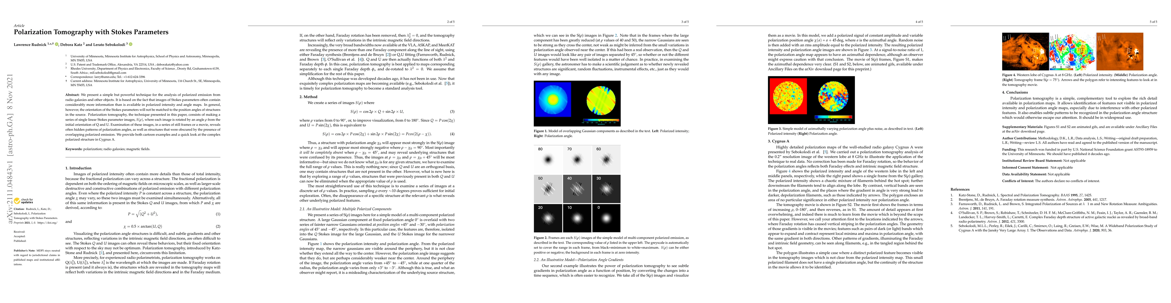 This paper introduces Polarization Tomography, a technique using Stokes parameters to reveal hidden polarization patterns and structures in radio galaxies. It involves creating a series of rotated Stokes parameter images, S(ρ), to uncover obscured details.