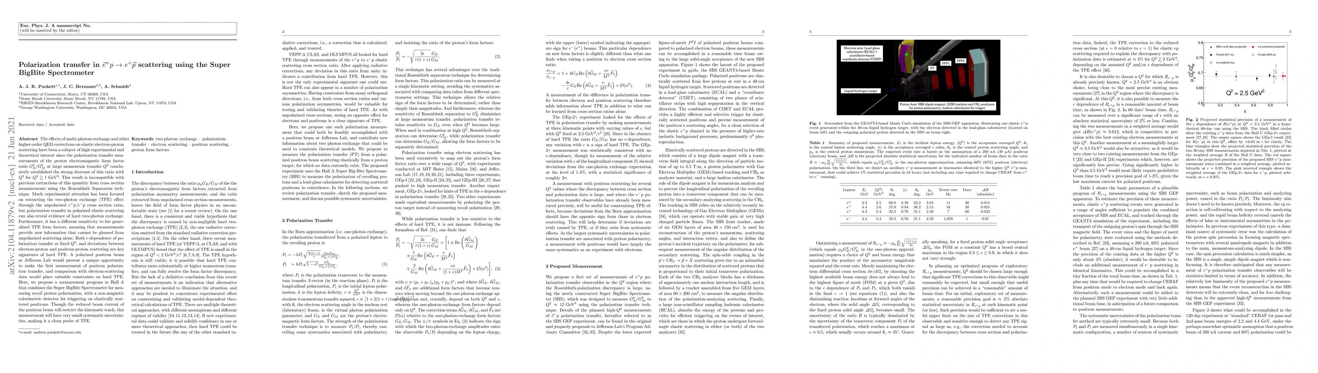 The effects of multi-photon-exchange and other higher-order QED corrections on elastic electron-proton scattering have been a subject of high experimental and theoretical interest since the polarization transfer measurements of the proton electromagnetic form factor ratio $G_E^p/G_M^p$ at large momentum transfer $Q^2$ conclusively established the strong decrease of this ratio with $Q^2$ for $Q^2 \gtrsim 1$ GeV$^2$. This result is incompatible with previous extractions of this quantity from cross section measurements using the Rosenbluth Separation technique. Much experimental attention has been focused on extracting the two-photon exchange (TPE) effect through the unpolarized $e^+p/e^-p$ cross section ratio, but polarization transfer in polarized elastic scattering can also reveal evidence of hard two-photon exchange. Furthermore, it has a different sensitivity to the generalized TPE form factors, meaning that measurements provide new information that cannot be gleaned from unpolarized scattering alone. Both $\epsilon$-dependence of polarization transfer at fixed $Q^2$, and deviations between electron-proton and positron-proton scattering are key signatures of hard TPE. A polarized positron beam at Jefferson Lab would present a unique opportunity to make the first measurement of positron polarization transfer, and comparison with electron-scattering data would place valuable constraints on hard TPE. Here, we propose a measurement program in Hall A that combines the Super BigBite Spectrometer for measuring recoil proton polarization, with a non-magnetic calorimetric detector for triggering on elastically scattered positrons. Though the reduced beam current of the positron beam will restrict the kinematic reach, this measurement will have very small systematic uncertainties, making it a clean probe of TPE.