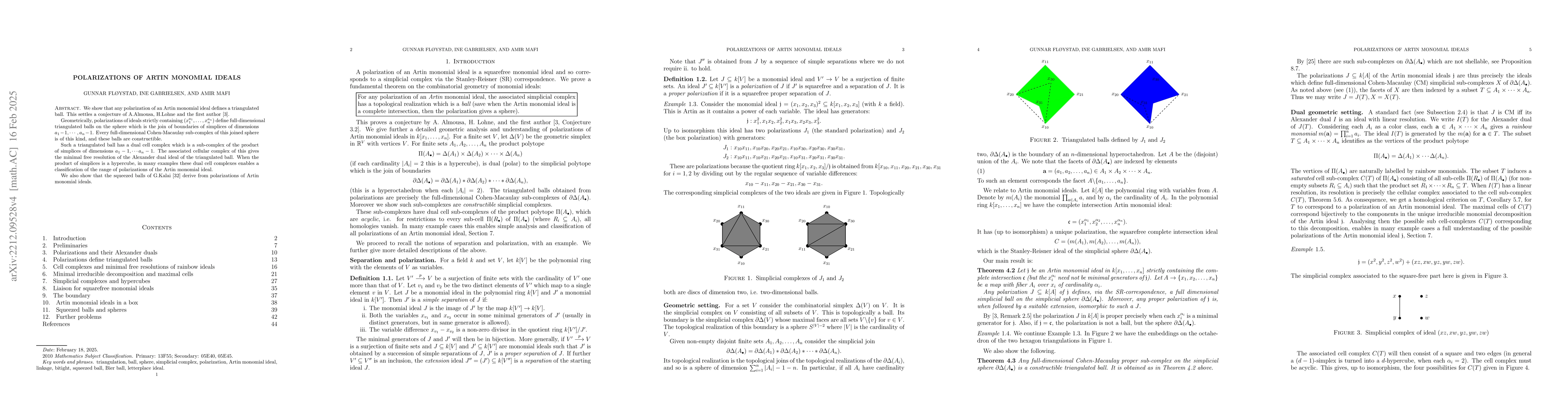 We show that any polarization of an artin monomial ideal defines a triangulated ball. This proves a conjecture of A.Almousa, H.Lohne and the first author. Geometrically, polarizations of ideals containing $(x_1^{a_1}, \ldots, x_n^{a_n})$ define full-dimensional triangulated balls on the sphere which is the join of boundaries of simplices of dimensions $a_1-1, \cdots, a_n-1$. We give a simple description of the boundaries of these triangulated balls, which are triangulated spheres. Combinatorially, these triangulated balls derive from subsets of products of finite sets $A_1 \times A_2 \times \cdots \times A_n$ which we call bitight. The subset and its complement fulfill exchange conditions similar to that of matroids. In the appendix we show that the squeezed balls of G.Kalai derive from polarizations of artin monomial ideals