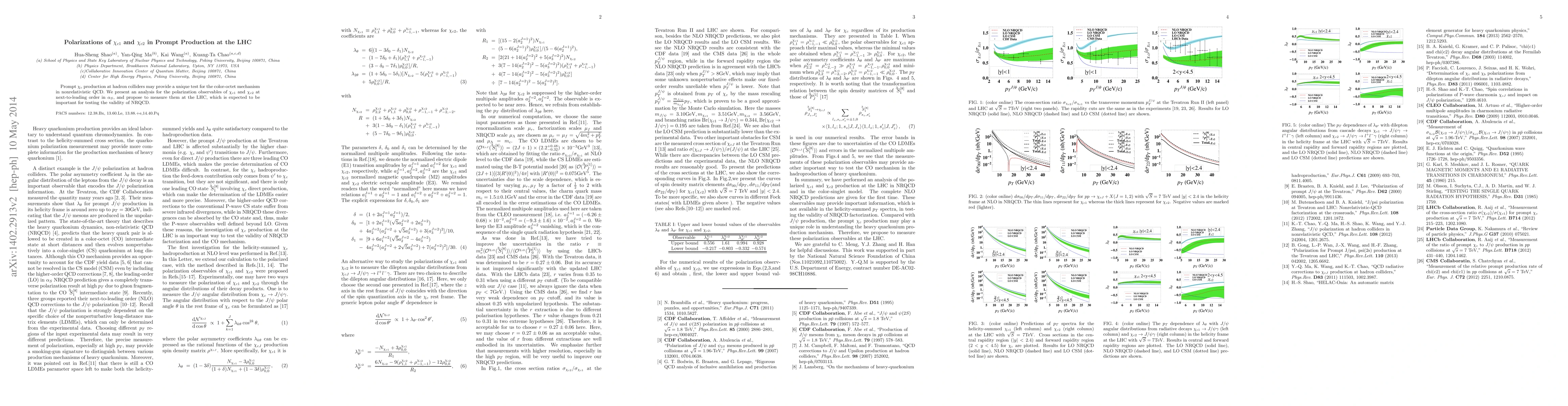 This paper analyzes the polarization states of $\chi_{c1}$ and $\chi_{c2}$ in prompt production at the LHC, aiming to test the color-octet mechanism in nonrelativistic QCD. The study proposes measurements at the LHC to validate the nonrelativistic QCD framework.