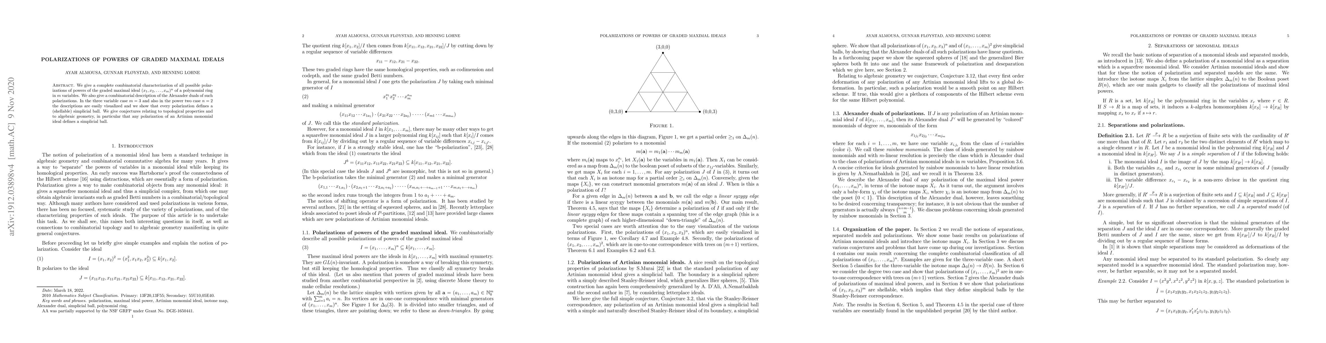 We give a complete combinatorial characterization of all possible polarizations of powers of the graded maximal ideal $(x_1,x_2,\cdots,x_m)^n$ of a polynomial ring in $m$ variables. We also give a combinatorial description of the Alexander duals of such polarizations. In the three variable case $m=3$ and also in the power two case $n=2$ the descriptions are easily visualized and we show that every polarization defines a (shellable) simplicial ball. We give conjectures relating to topological properties and to algebraic geometry, in particular that any polarization of an Artinian monomial ideal defines a simplicial ball.