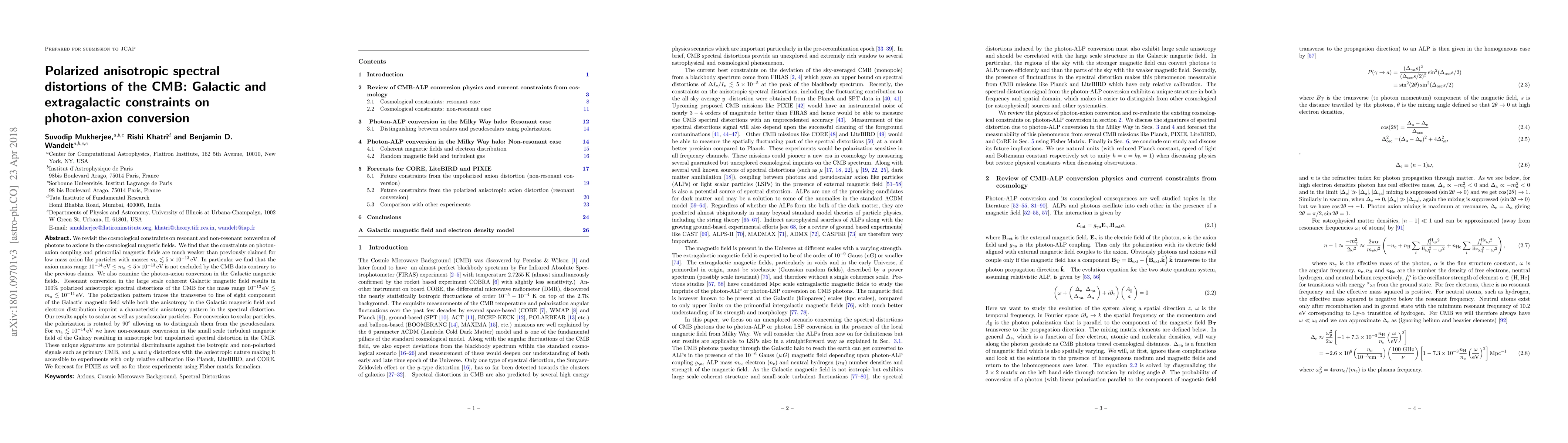 This paper revisits constraints on photon-axion conversion in cosmological magnetic fields, finding weaker limits than previously claimed for low-mass axions. It identifies unique polarized spectral distortions in the CMB due to resonant conversion in the Galactic magnetic field, offering potential discrimination against other isotropic distortions and accessible to experiments like Planck and LiteBIRD.