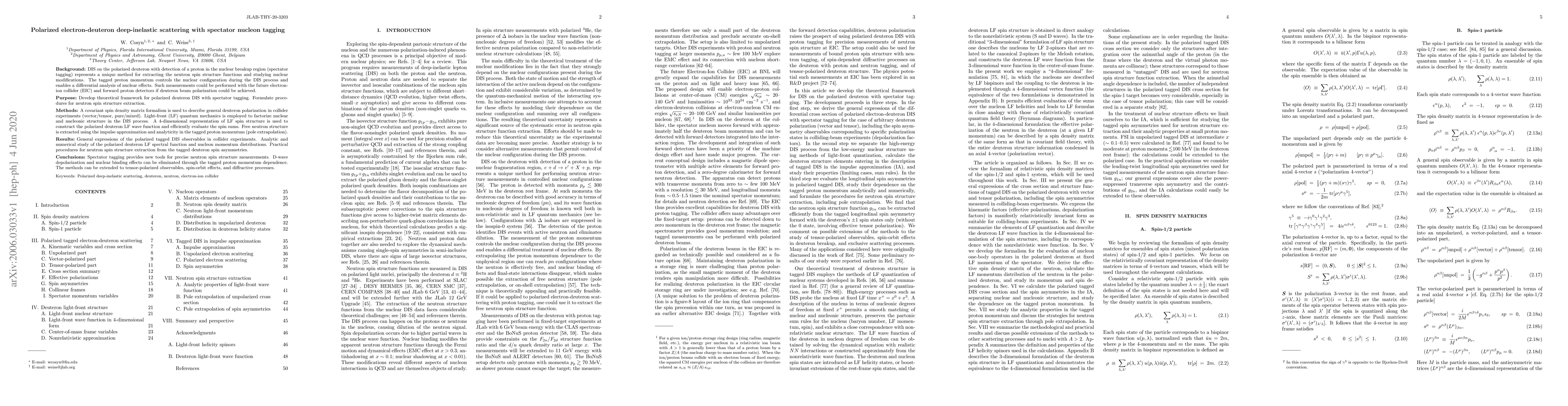 This paper develops a theoretical framework for polarized electron-deuteron deep-inelastic scattering (DIS) with spectator nucleon tagging, enabling precise extraction of neutron spin structure functions. The study employs covariant spin density matrix and light-front quantum mechanics to formulate procedures for neutron spin structure extraction, revealing new tools for eliminating nuclear binding effects and depolarization.