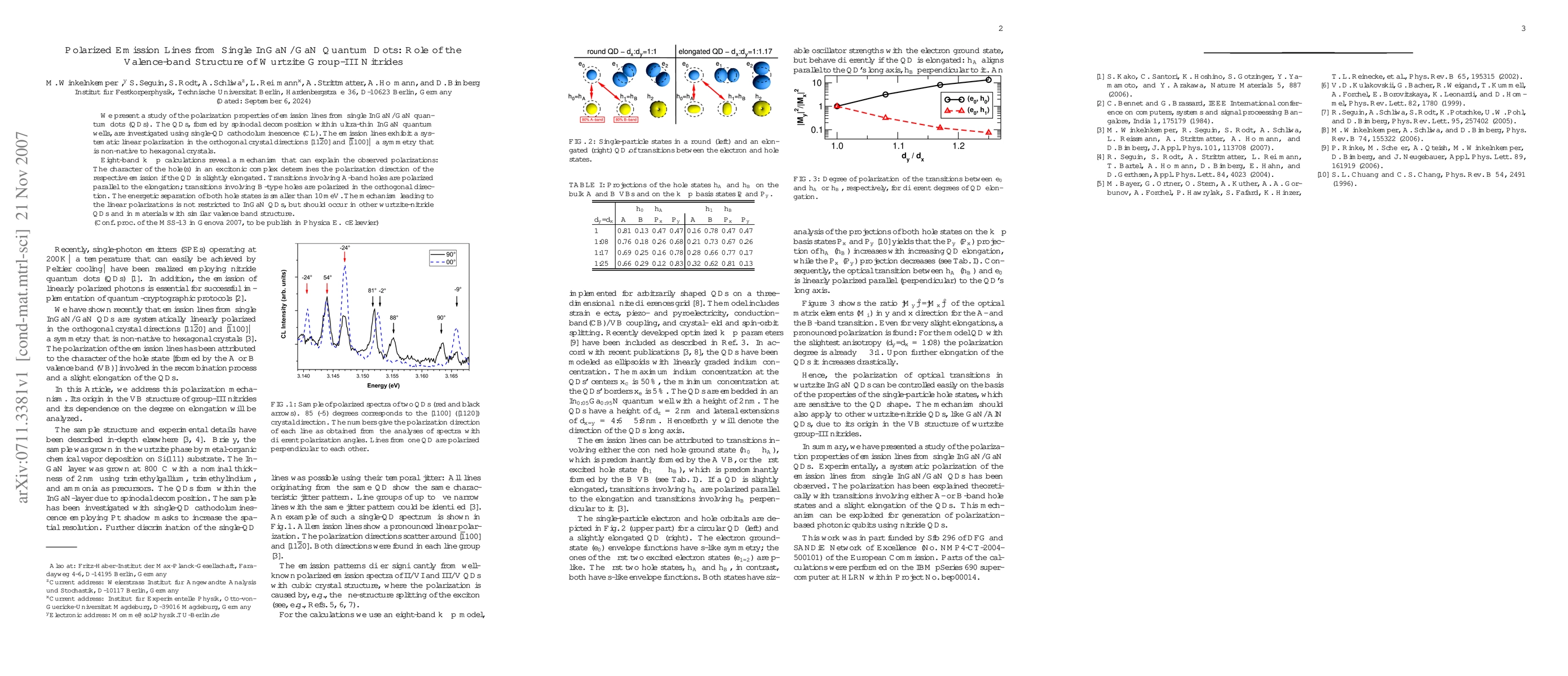This study investigates the polarization properties of emission lines from single InGaN/GaN quantum dots using cathodoluminescence. The observed linear polarization is explained by the valence-band structure of wurtzite group-III nitrides, where hole states determine the polarization direction based on the quantum dot's elongation.