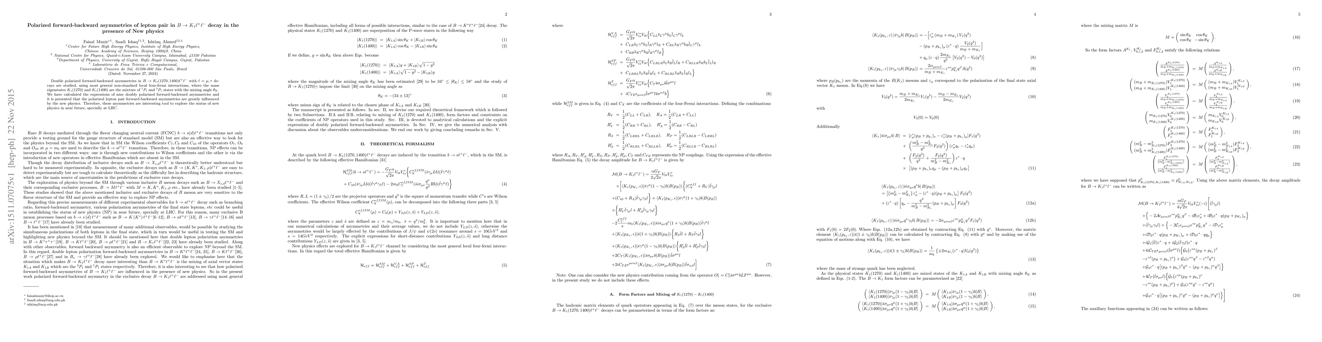 This paper investigates double polarized forward-backward asymmetries in $B\rightarrow K_{1}(1270,1400)\ell^{+}\ell^{-}$ decays, considering general non-standard interactions. It finds that these asymmetries are significantly affected by new physics, making them a valuable tool for exploring new physics at the LHC.
