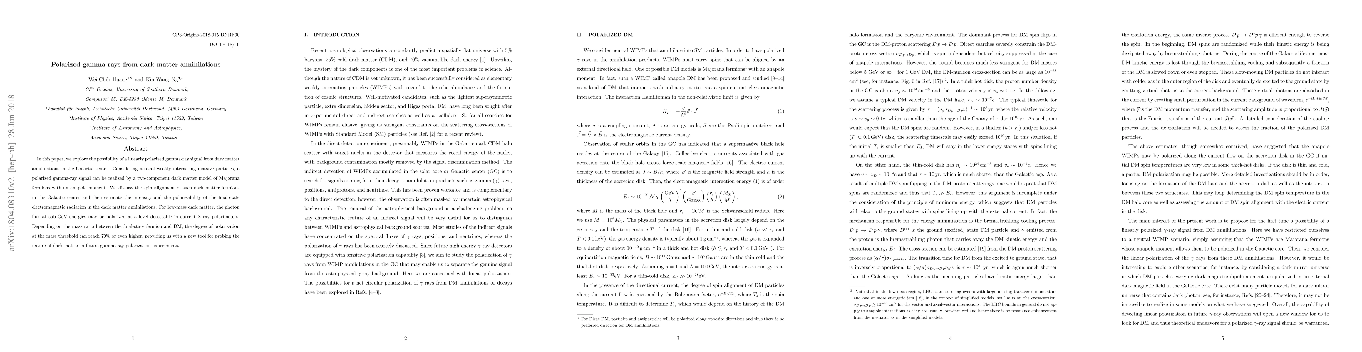 The paper presents a phenomenological model involving two types of degenerate Majorana dark matter particles with anapole interactions, which can polarize the spins of dark matter in the presence of electric currents at the Galactic Center, resulting in linearly polarized gamma-ray flux from dark matter annihilation.