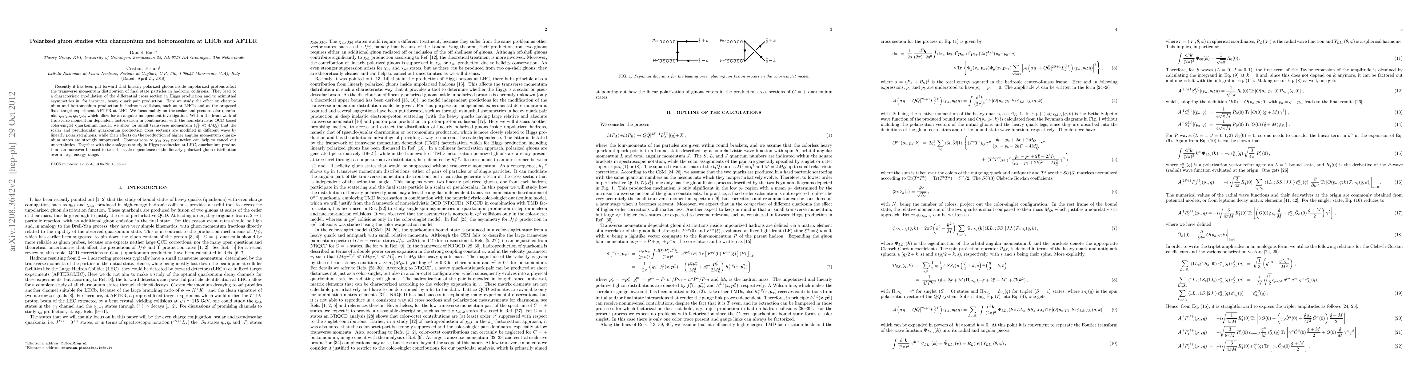 The paper presents detailed calculations of quarkonium production cross sections incorporating linearly polarized gluons within the color-singlet model, demonstrating distinct modulation patterns for scalar and pseudoscalar states.
