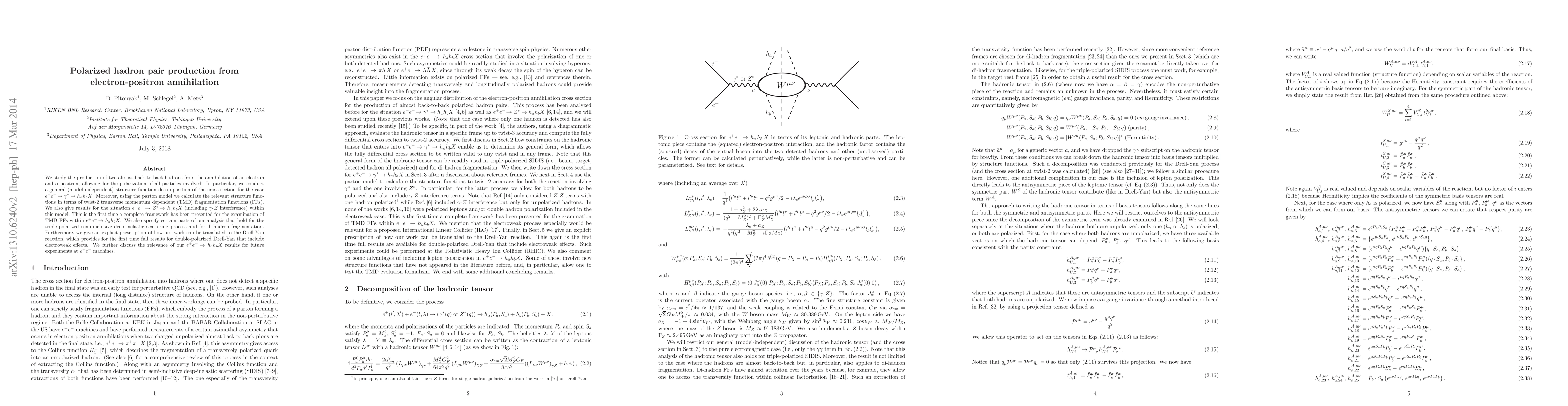We study the production of two almost back-to-back hadrons from the annihilation of an electron and a positron, allowing for the polarization of all particles involved. In particular, we conduct a general (model-independent) structure function decomposition of the cross section for the case $e^+e^- \to \gamma^* \to h_ah_bX$. Moreover, using the parton model we calculate the relevant structure functions in terms of twist-2 transverse momentum dependent (TMD) fragmentation functions (FFs). We also give results for the situation $e^+e^- \to Z^* \to h_ah_bX$ (including $\gamma$-$Z$ interference) within this model. This is the first time a complete framework has been presented for the examination of TMD FFs within $e^+e^-\to h_ah_bX$. We also specify certain parts of our analysis that hold for the triple-polarized semi-inclusive deep-inelastic scattering process and for di-hadron fragmentation. Furthermore, we give an explicit prescription of how our work can be translated to the Drell-Yan reaction, which provides for the first time full results for double-polarized Drell-Yan that include electroweak effects. We further discuss the relevance of our $e^+e^-\to h_ah_bX$ results for future experiments at $e^+e^-$ machines.