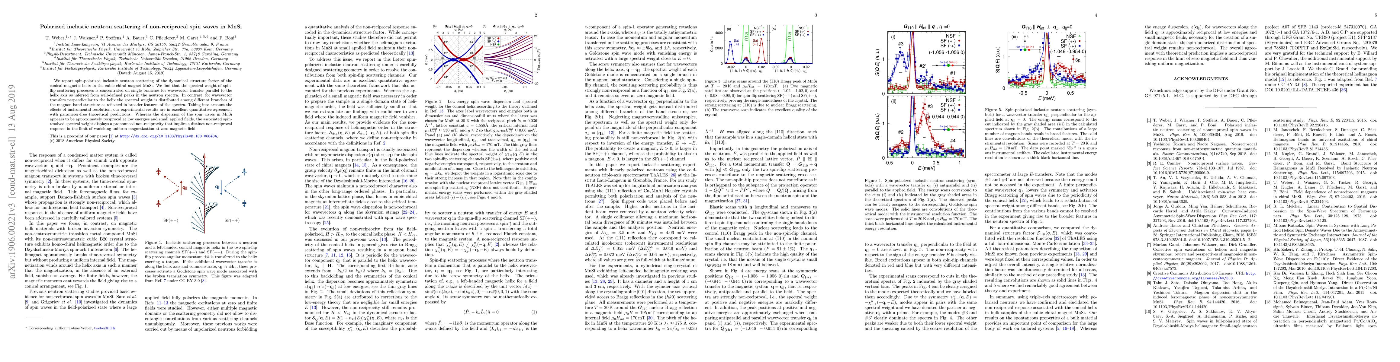 We report spin-polarized inelastic neutron scattering of the dynamical structure factor of the conical magnetic helix in the cubic chiral magnet MnSi. We find that the spectral weight of spin-flip scattering processes is concentrated on single branches for wavevector transfer parallel to the helix axis as inferred from well-defined peaks in the neutron spectra. In contrast, for wavevector transfers perpendicular to the helix the spectral weight is distributed among different branches of the magnon band structure as reflected in broader features of the spectra. Taking into account the effects of instrumental resolution, our experimental results are in excellent quantitative agreement with parameter-free theoretical predictions. Whereas the dispersion of the spin waves in MnSi appears to be approximately reciprocal at low energies and small applied fields, the associated spin-resolved spectral weight displays a pronounced non-reciprocity that implies a distinct non-reciprocal response in the limit of vanishing uniform magnetization at zero magnetic field.