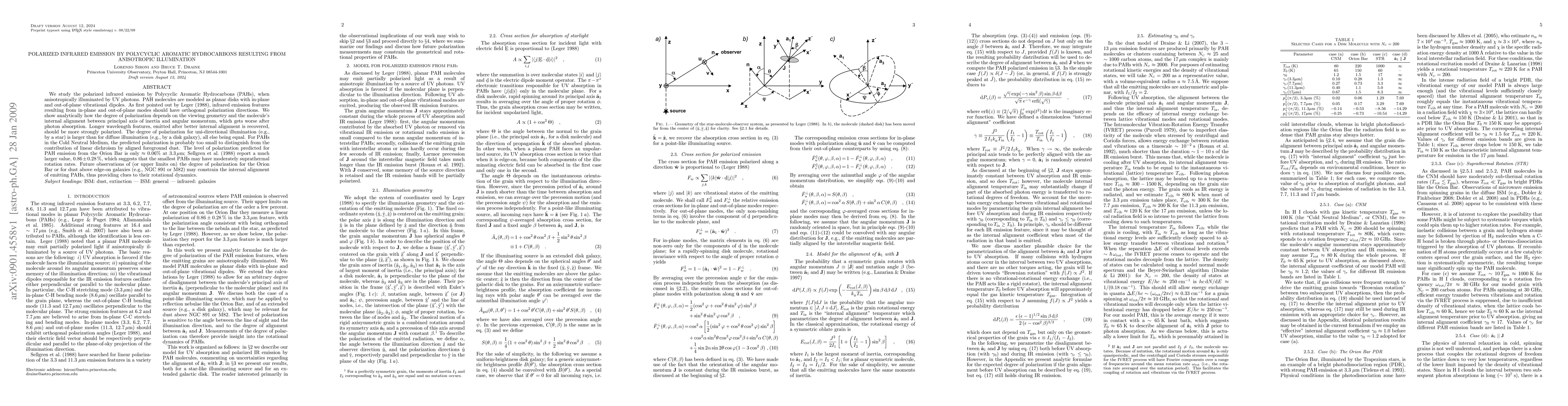 This paper investigates the polarized infrared emission from Polycyclic Aromatic Hydrocarbons (PAHs) under anisotropic UV illumination, showing that the degree of polarization is influenced by viewing geometry and molecular alignment. Predicted polarization levels for specific regions like the Orion Bar are low, suggesting that smaller PAHs may rotate faster than previously thought, with future observations potentially shedding light on PAH rotational dynamics.