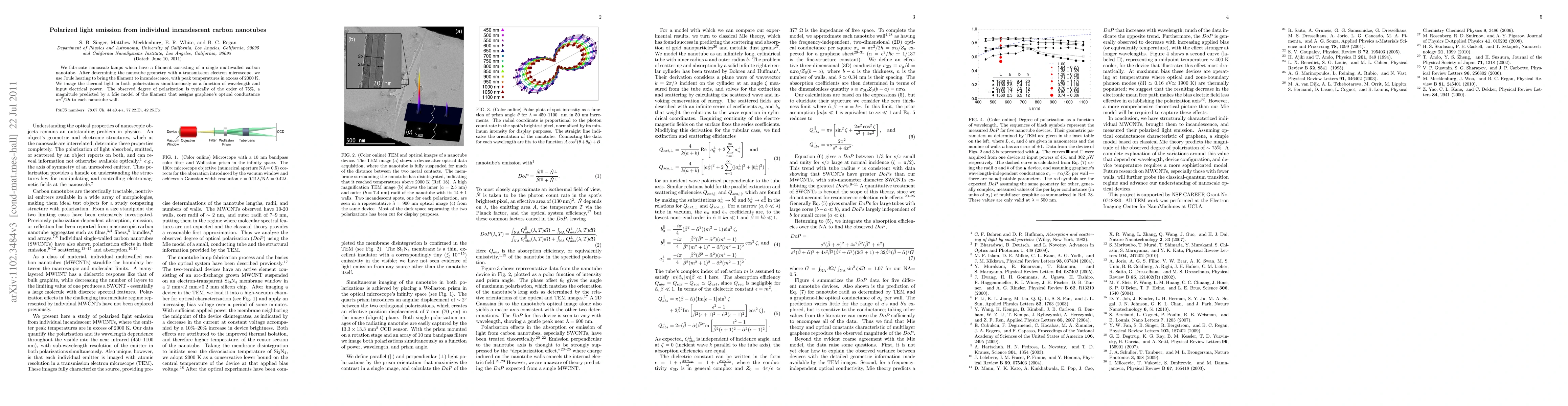Researchers created nanoscale lamps using single carbon nanotubes, which emitted polarized light with a polarization degree of 75% at high temperatures, matching predictions from a Mie model.