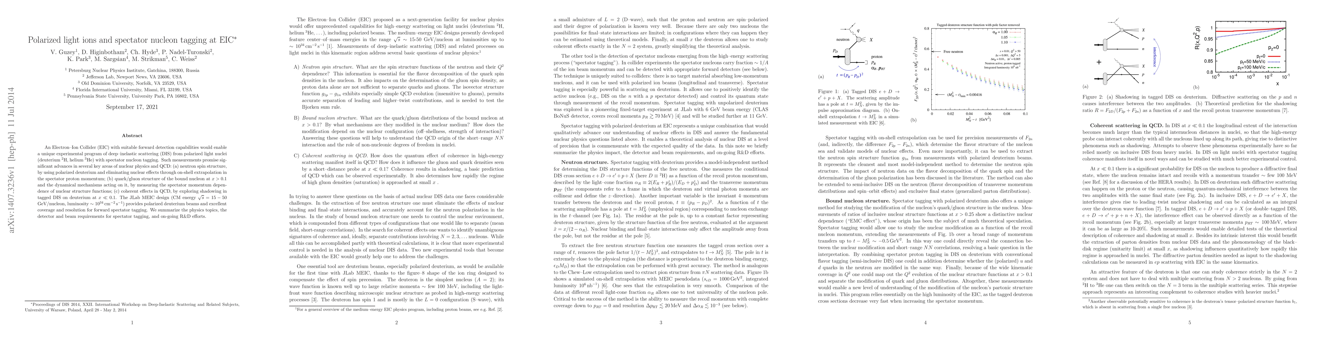 This paper discusses the potential of an Electron-Ion Collider (EIC) to conduct deep-inelastic scattering experiments using polarized light nuclei, with a focus on neutron spin structure, the quark/gluon structure of bound nucleons, and coherent QCD effects. The JLab MEIC design is highlighted for its capabilities in spectator nucleon tagging and its contributions to advancing nuclear physics and QCD.