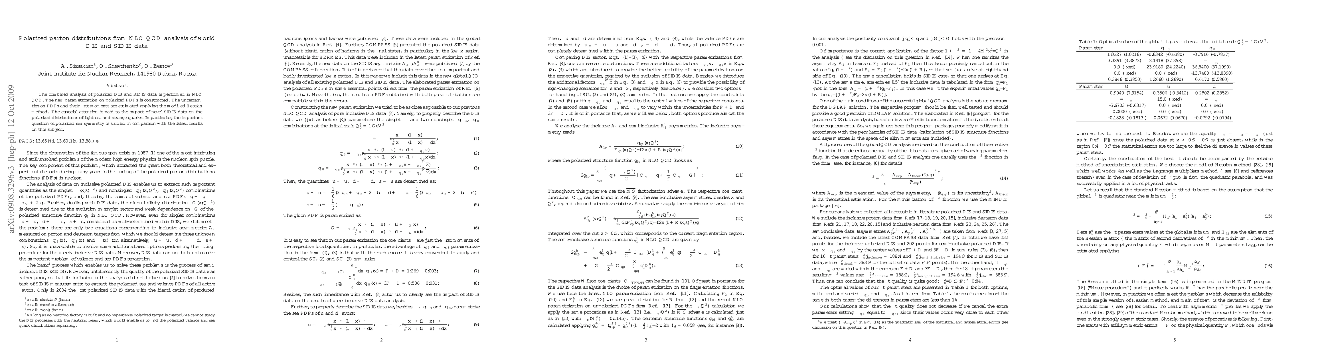 The combined analysis of polarized DIS and SIDIS data is performed in NLO QCD. The new parametrization on polarized PDFs is constructed. The uncertainties on PDFs and their first moments are estimated applying the modified Hessian method. The especial attention is paid to the impact of novel SIDIS data on the polarized distributions of light sea and strange quarks. In particular, the important question of polarized sea symmetry is studied in comparison with the latest results on this subject.