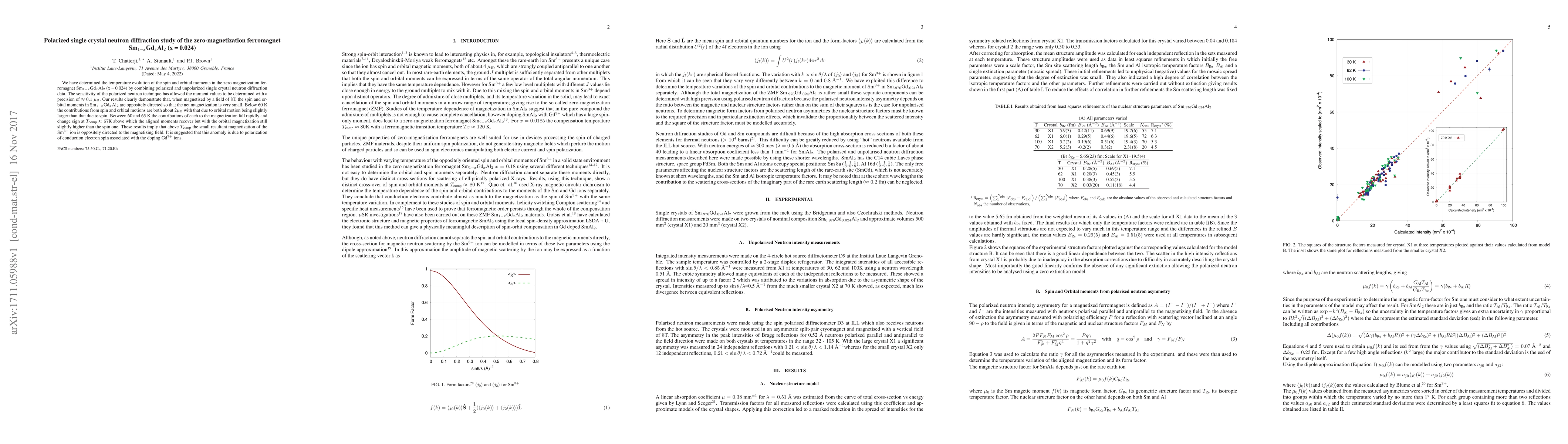 Researchers studied a ferromagnet material with zero magnetization using polarized neutron diffraction, finding that its spin and orbital moments change direction at 67K, suggesting that conduction electron spin polarization may be responsible for this anomaly.