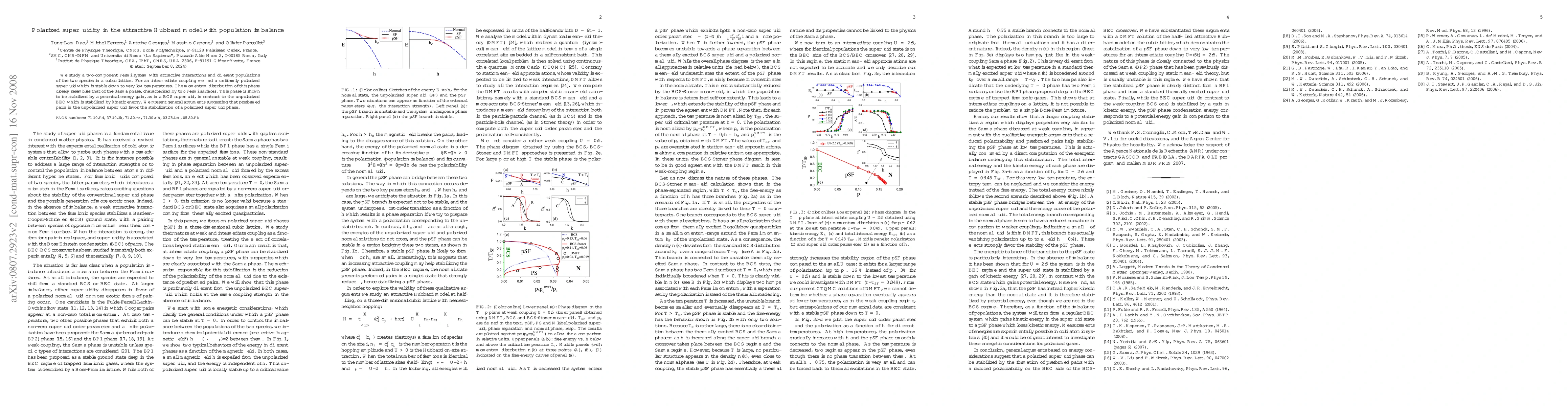 This study investigates a two-component Fermi system with attractive interactions and population imbalance, revealing a uniformly polarized superfluid stable at low temperatures. This phase, resembling the Sarma phase, is stabilized by potential energy gain, unlike the kinetic energy-stabilized unpolarized BEC, suggesting preformed pairs favor the polarized superfluid state.
