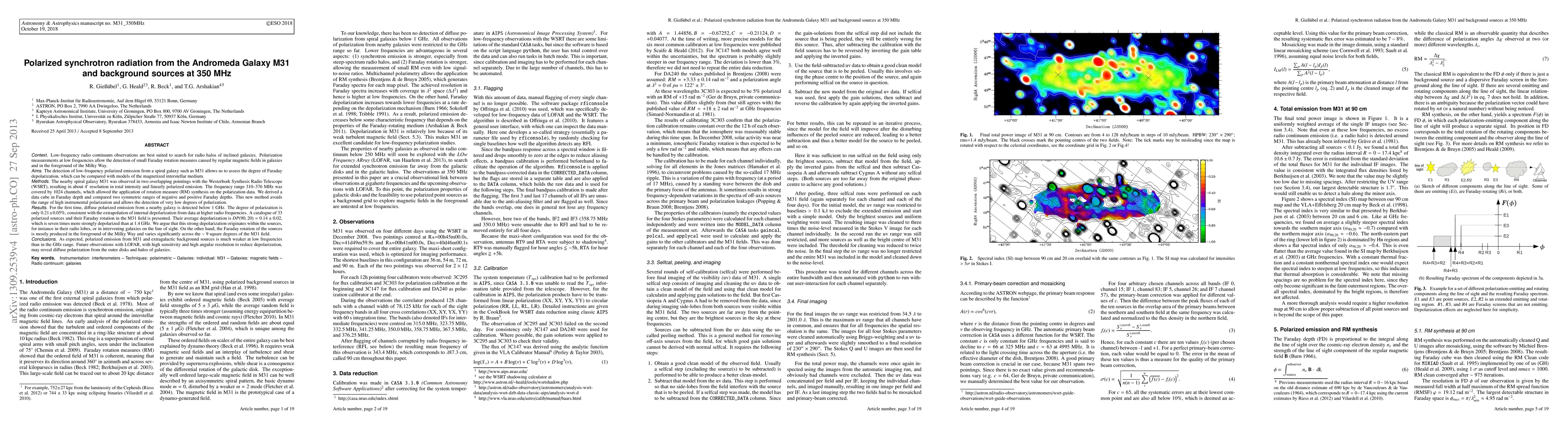 Polarization measurements at low radio frequencies allow detection of small Faraday rotation measures caused by regular magnetic fields in galaxies and in the foreground of the Milky Way. The galaxy M31 was observed in two overlapping pointings with the Westerbork Synthesis Radio Telescope (WSRT) resulting in ~4' resolution in total intensity and linearly polarized emission. The frequency range 310-376 MHz was covered by 1024 channels which allowed the application of RM synthesis. We derived a data cube in Faraday depth and compared two symmetric ranges of negative and positive Faraday depths. This new method avoids the range of high instrumental polarization and allows the detection of very low degrees of polarization. For the first time, diffuse polarized emission from a nearby galaxy is detected below 1 GHz. The degree of polarization is only 0.21 +/- 0.05 %, consistent with extrapolation of internal depolarization from data at higher radio frequency. A catalogue of 33 polarized sources and their Faraday rotation in the M31 field is presented. Their average depolarization is DP(90,20) = 0.14 +/- 0.02, 7 times stronger depolarized than at 1.4 GHz. We argue that this strong depolarization originates within the sources, e.g. in their radio lobes, or in intervening galaxies on the line of sight. On the other hand, the Faraday rotation of the sources is mostly produced in the foreground of the Milky Way and varies significantly across the ~9 square degree M31 field. As expected, polarized emission from M31 and extragalactic background sources is much weaker at low frequencies compared to the GHz range. Future observations with LOFAR, with high sensitivity and high angular resolution to reduce depolarization, may reveal diffuse polarization from the outer disks and halos of galaxies.
