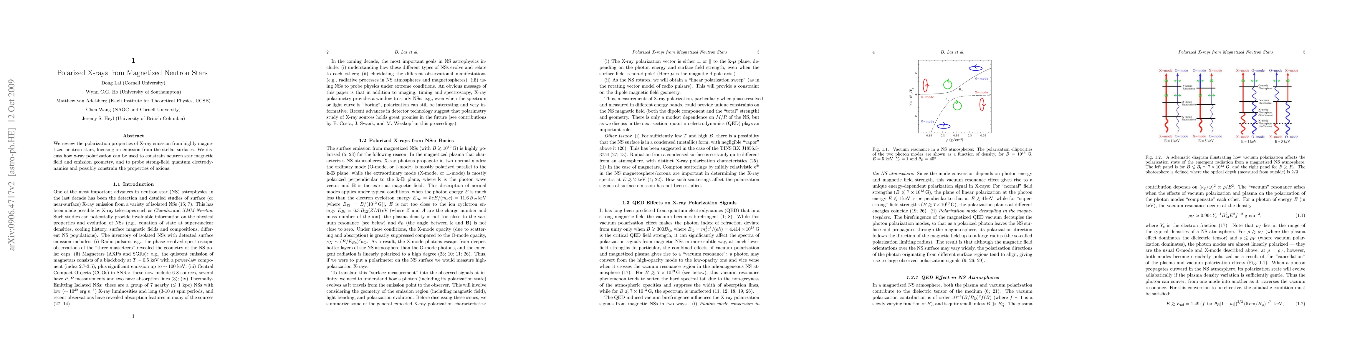 This paper reviews the polarization properties of X-rays emitted from magnetized neutron stars, emphasizing surface emissions. It explores how X-ray polarization can provide insights into neutron star magnetic fields, emission geometries, and potentially probe strong-field quantum electrodynamics and axion properties.