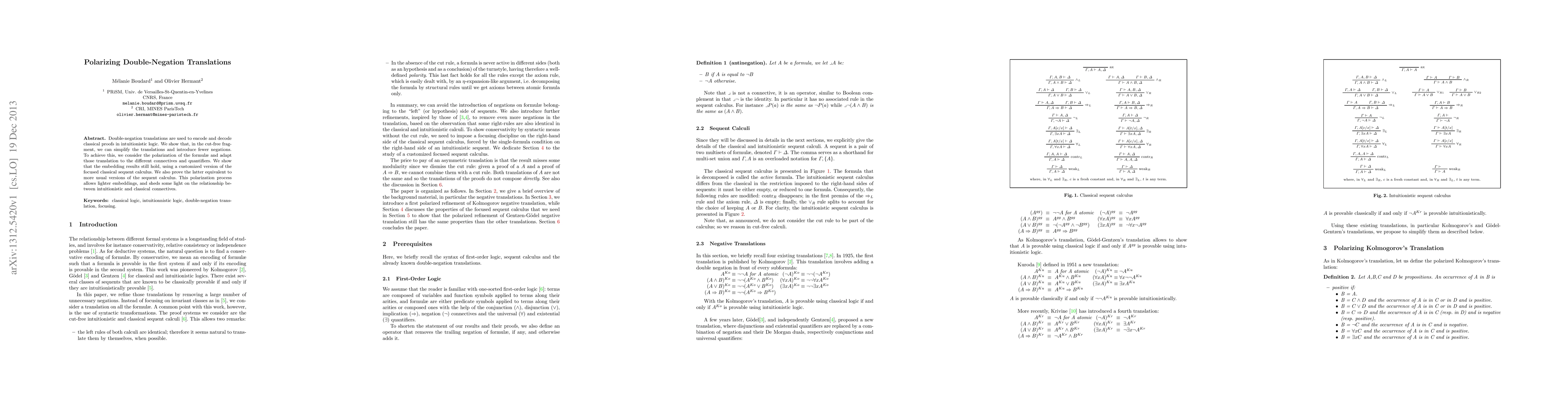 Double-negation translations are used to encode and decode classical proofs in intuitionistic logic. We show that, in the cut-free fragment, we can simplify the translations and introduce fewer negations. To achieve this, we consider the polarization of the formul{\ae}{} and adapt those translation to the different connectives and quantifiers. We show that the embedding results still hold, using a customized version of the focused classical sequent calculus. We also prove the latter equivalent to more usual versions of the sequent calculus. This polarization process allows lighter embeddings, and sheds some light on the relationship between intuitionistic and classical connectives.