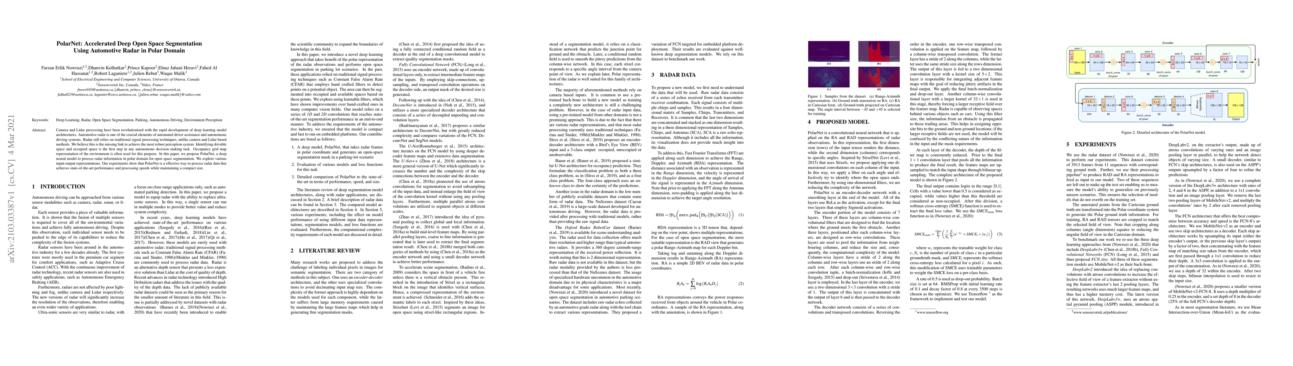 PolarNet is a deep neural model designed to process radar data in the polar domain for open space segmentation in autonomous driving. It achieves state-of-the-art performance and processing speeds, offering a robust solution to the missing link in automated driver assistance systems.