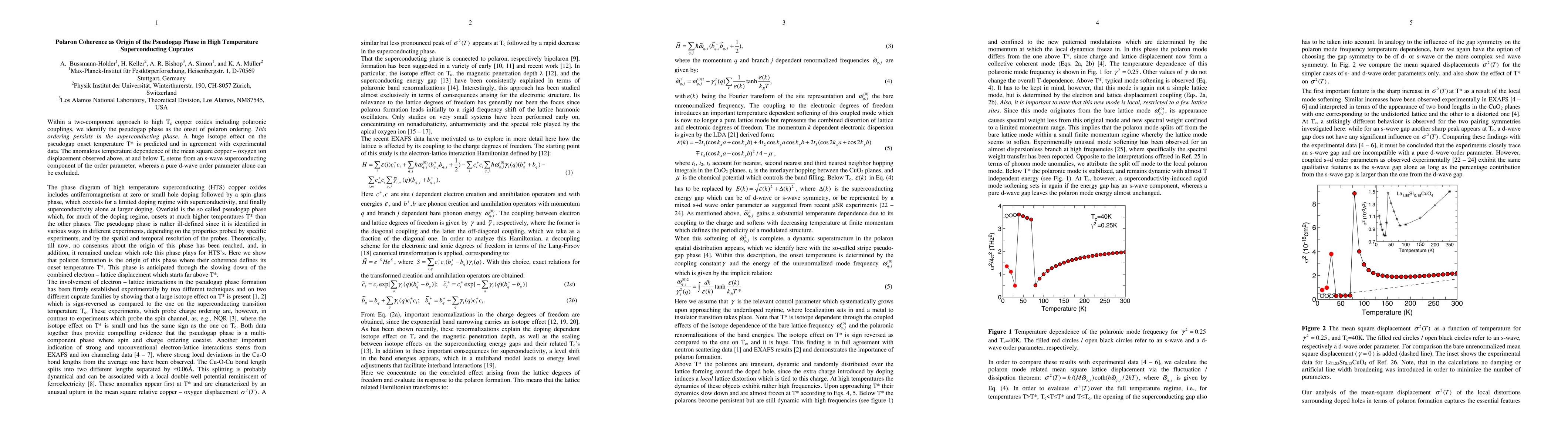 Within a two component approach to high Tc copper oxides including polaronic couplings, we identify the pseudogap phase as the onset of polaron ordering. This ordering persists in the superconducting phase. A huge isotope effect on the pseudogap onset temperature is predicted and in agreement with experimental data. The anomalous temperature dependence of the mean square copper oxygen ion displacement observed above, at and below Tc stems from an s-wave superconducting component of the order parameter, whereas a pure d-wave order parameter alone can be excluded.