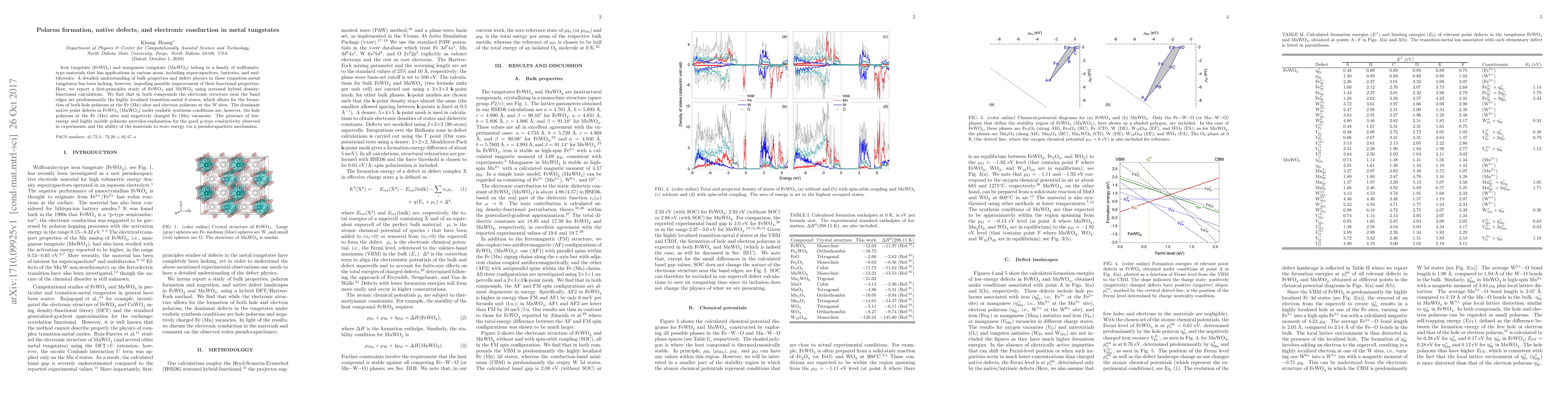 Researchers studied iron tungstate and manganese tungstate using first-principles calculations, finding that these materials form polarons at specific sites which improve their p-type conductivity and pseudocapacitive energy storage capabilities.