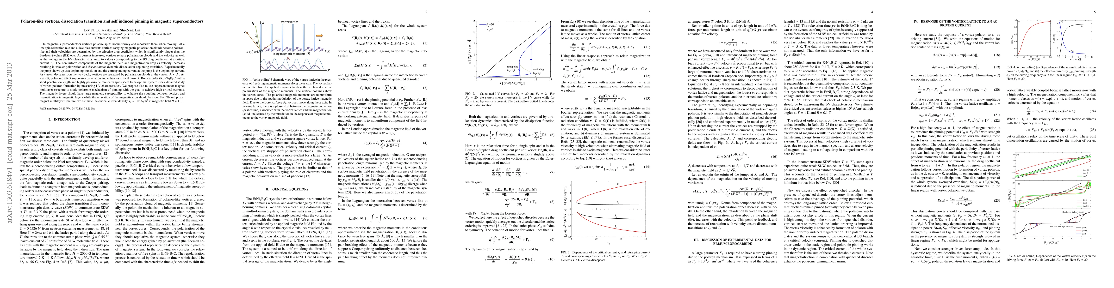 This paper investigates the behavior of vortices in magnetic superconductors, showing that vortices form polaron-like structures at low spin relaxation rates and currents, leading to enhanced critical current. The study reveals a discontinuous dissociation depinning transition and proposes superconductor-magnet multilayers as a method to achieve high critical current densities.