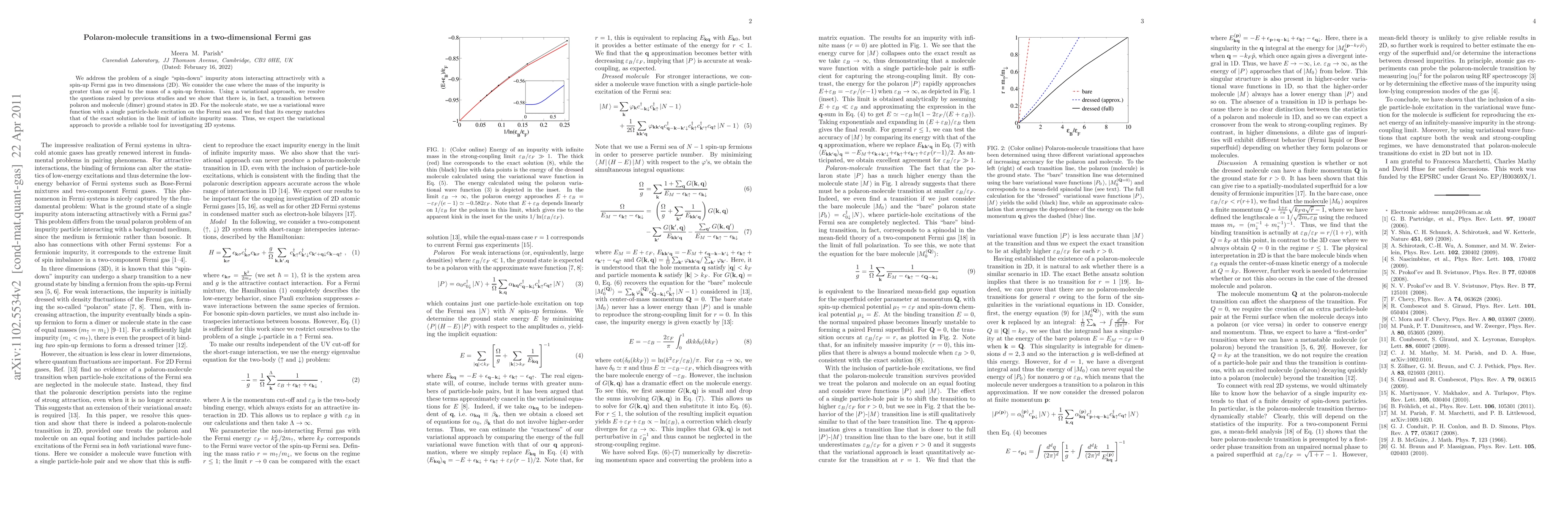 This paper investigates the interaction between a heavy "spin-down" impurity atom and a spin-up Fermi gas in two dimensions, revealing a transition between polaron and molecule ground states via a variational approach. The study confirms the existence of a molecule state with an energy matching the exact solution in the limit of infinite impurity mass.