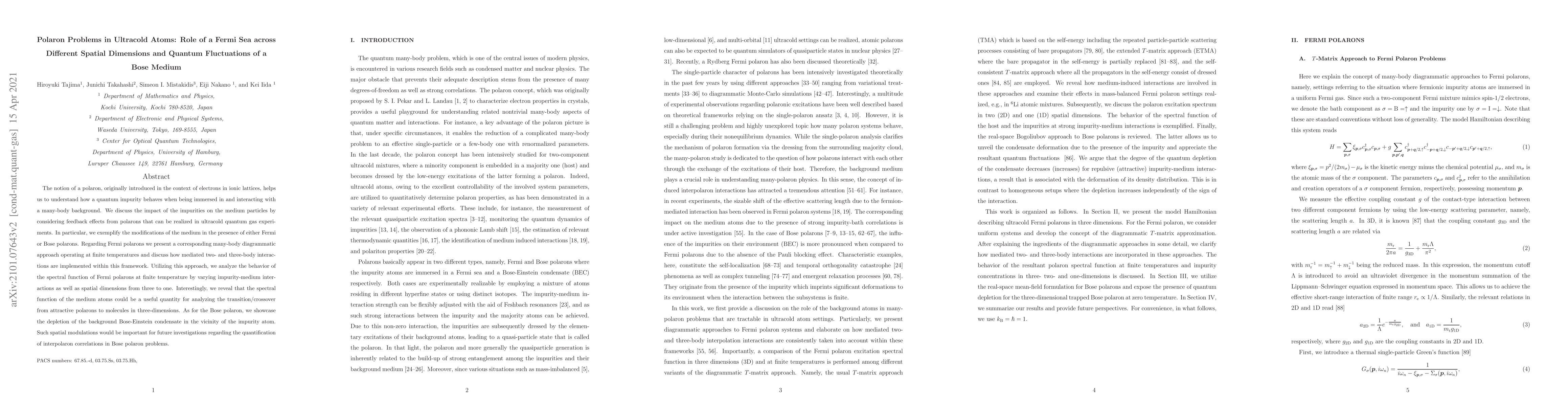This paper explores the behavior of polarons in ultracold quantum gases, focusing on the interactions between quantum impurities and their surrounding medium. It examines Fermi polarons in various spatial dimensions and their impact on the medium, while also investigating Bose polarons and their effect on the background Bose-Einstein condensate, highlighting the potential for future studies on interpolaron correlations.
