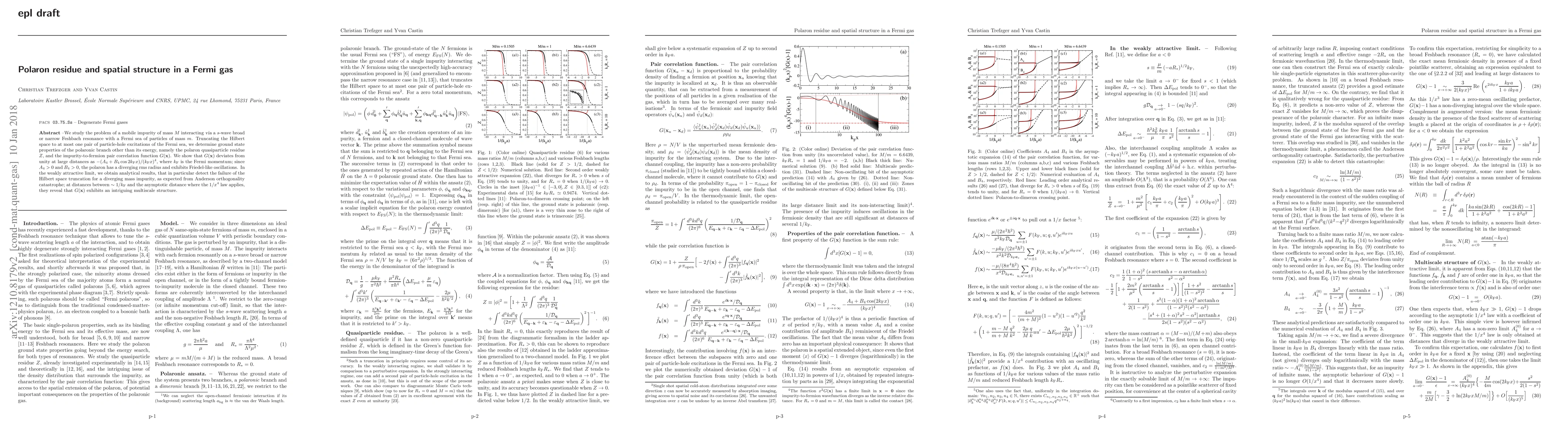 This research examines a mobile impurity interacting with a Fermi sea, determining the polaron quasiparticle residue and correlation function. It reveals that the polaron has a diverging radius and exhibits Friedel-like oscillations, with a complex multiscale structure in the weakly attractive limit. The study uses Hilbert space truncation to one pair of particle-hole excitations.
