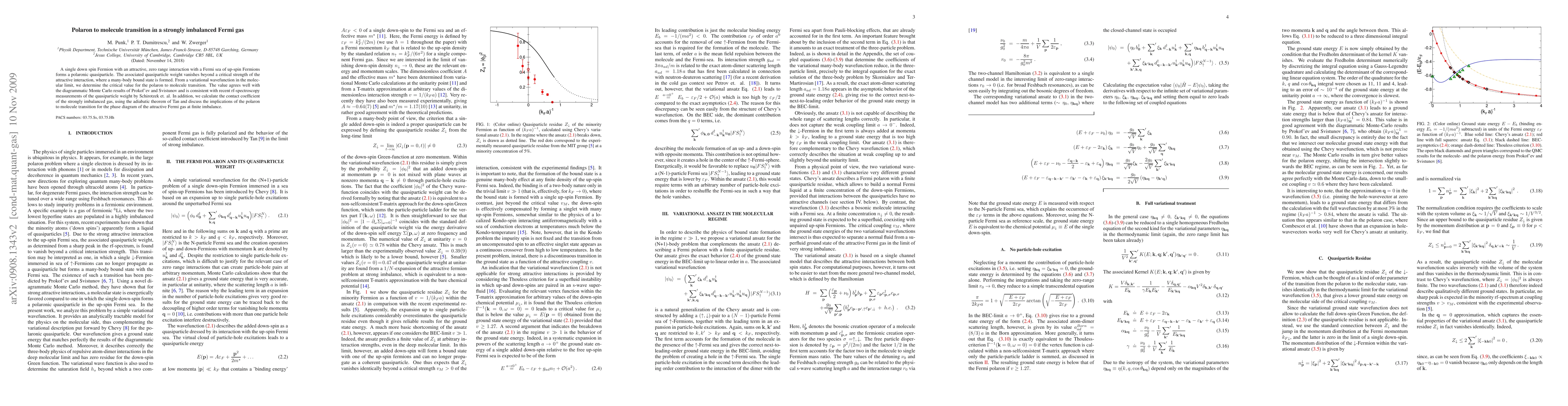 This research investigates the transition from a polaron quasiparticle to a molecule in a strongly imbalanced Fermi gas, determining the critical interaction strength for this transition and comparing results with Monte Carlo simulations and experimental data. It also calculates the contact coefficient and discusses implications for the phase diagram of such systems.