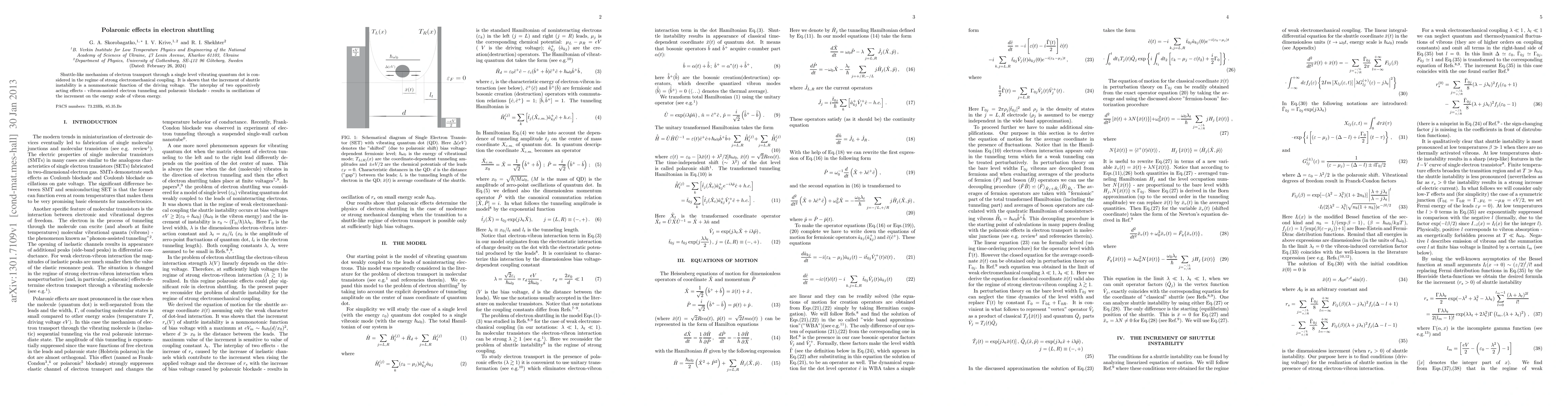 The paper presents a detailed theoretical analysis of electron shuttling in quantum dots under strong electromechanical coupling, including the effects of polaronic blockade and vibron-assisted tunneling.