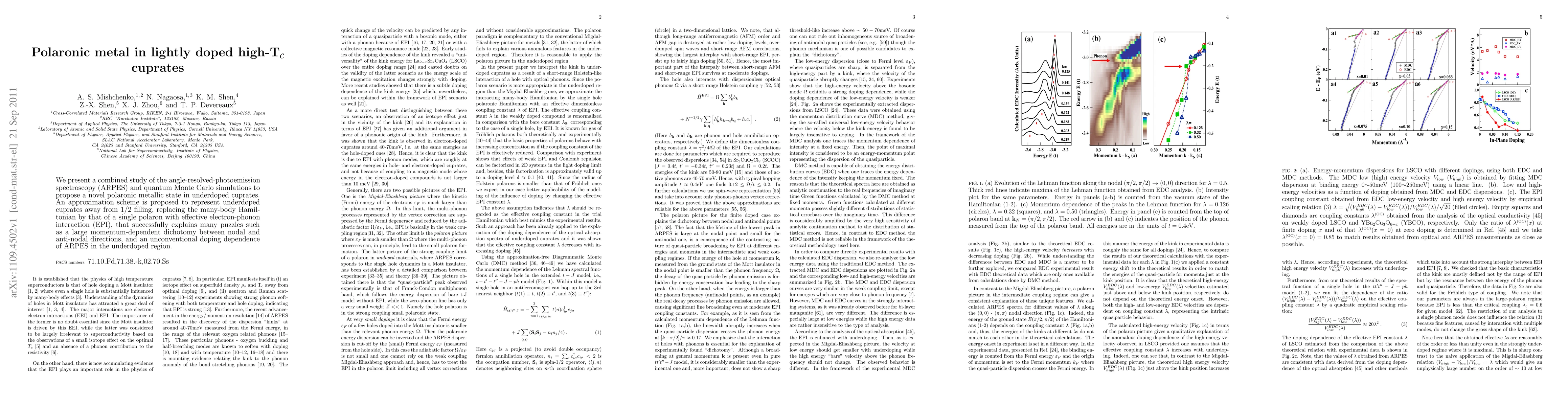 We present a combined study of the angle-resolved-photoemission spectroscopy (ARPES) and quantum Monte Carlo simulations to propose a novel polaronic metallic state in underdoped cuprates. An approximation scheme is proposed to represent underdoped cuprates away from 1/2 filling, replacing the many-body Hamiltonian by that of a single polaron with effective electron-phonon interaction (EPI), that successfully explains many puzzles such as a large momentum-dependent dichotomy between nodal and anti-nodal directions, and an unconventional doping dependence of ARPES in the underdoped region.