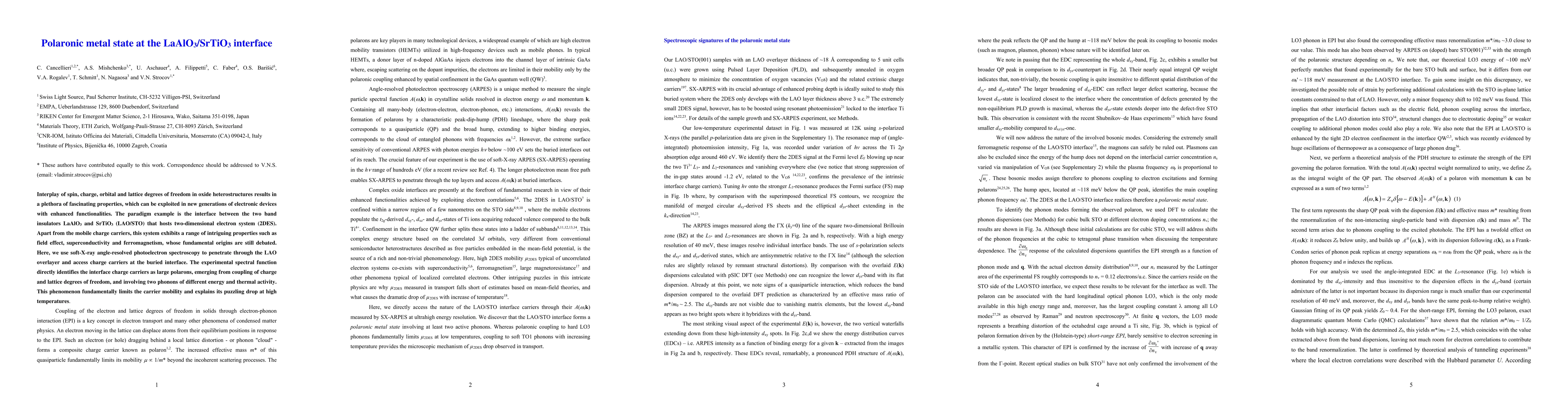 Interplay of spin, charge, orbital and lattice degrees of freedom in oxide heterostructures results in a plethora of fascinating properties, which can be exploited in new generations of electronic devices with enhanced functionalities. The paradigm example is the interface between the two band insulators LaAlO3 and SrTiO3 (LAO/STO) that hosts two-dimensional electron system (2DES). Apart from the mobile charge carriers, this system exhibits a range of intriguing properties such as field effect, superconductivity and ferromagnetism, whose fundamental origins are still debated. Here, we use soft-X-ray angle-resolved photoelectron spectroscopy to penetrate through the LAO overlayer and access charge carriers at the buried interface. The experimental spectral function directly identifies the interface charge carriers as large polarons, emerging from coupling of charge and lattice degrees of freedom, and involving two phonons of different energy and thermal activity. This phenomenon fundamentally limits the carrier mobility and explains its puzzling drop at high temperatures.