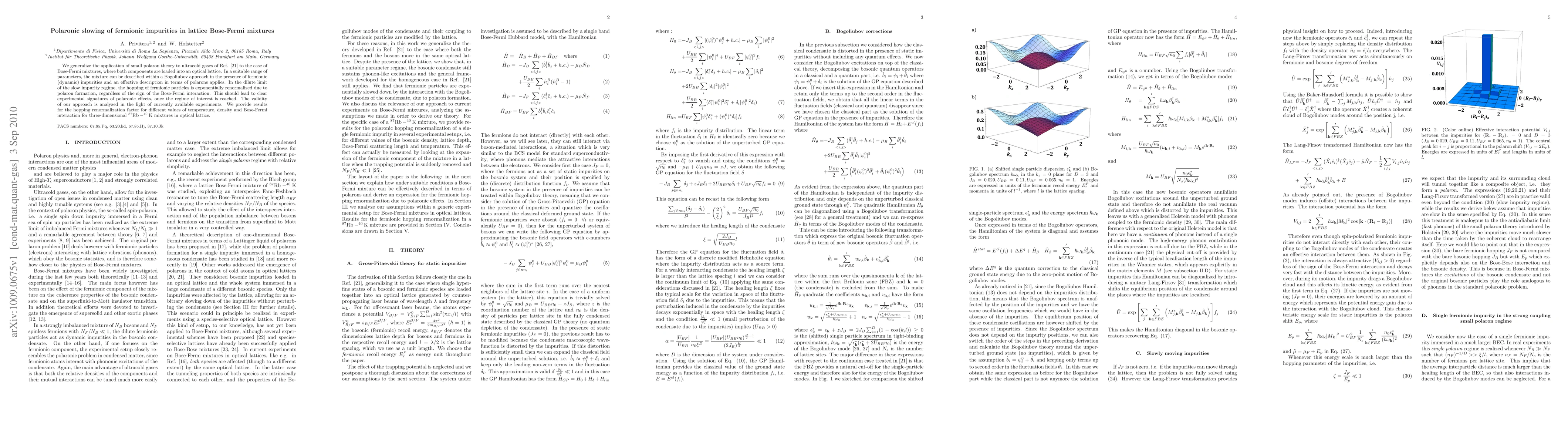 We generalize the application of small polaron theory to ultracold gases of Ref. [\onlinecite{jaksch_njp1}] to the case of Bose-Fermi mixtures, where both components are loaded into an optical lattice. In a suitable range of parameters, the mixture can be described within a Bogoliubov approach in the presence of fermionic (dynamic) impurities and an effective description in terms of polarons applies. In the dilute limit of the slow impurity regime, the hopping of fermionic particles is exponentially renormalized due to polaron formation, regardless of the sign of the Bose-Fermi interaction. This should lead to clear experimental signatures of polaronic effects, once the regime of interest is reached. The validity of our approach is analyzed in the light of currently available experiments. We provide results for the hopping renormalization factor for different values of temperature, density and Bose-Fermi interaction for three-dimensional $^{87}\rm{Rb}-^{40}\rm{K}$ mixtures in optical lattice.