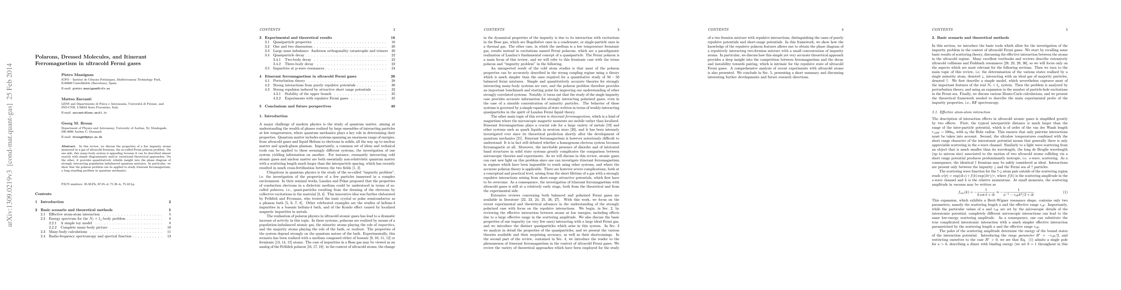 This review explores the Fermi polaron problem, where impurity atoms interact with ultracold Fermi gases, providing exact theoretical descriptions and insights into the phase diagram of quantum mixtures. It also applies these insights to study itinerant ferromagnetism, a significant issue in quantum mechanics.