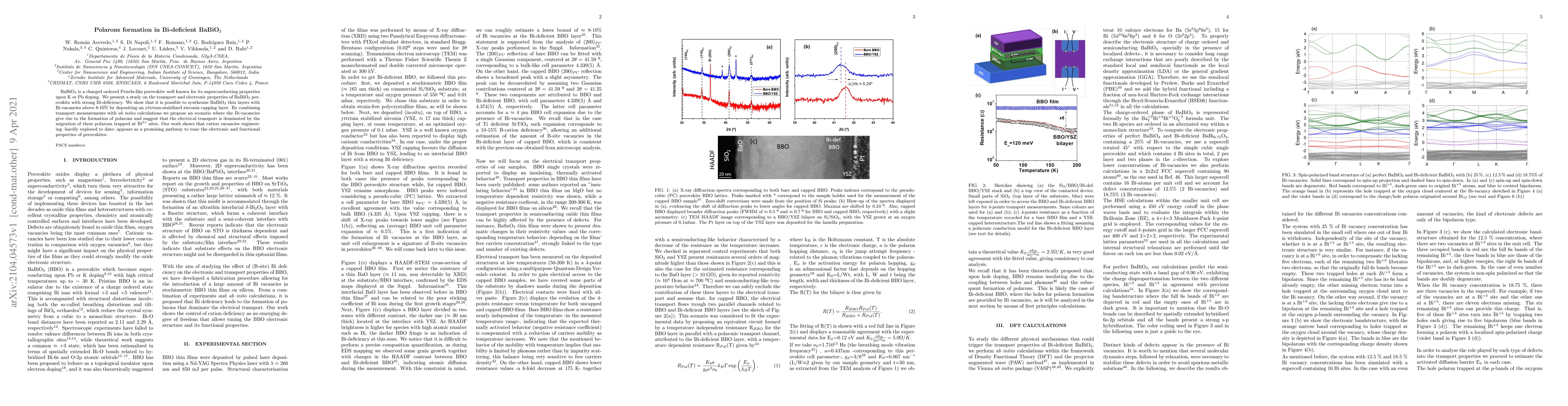 This study investigates the formation of polarons in Bi-deficient BaBiO$_3$ perovskites, revealing that Bi-vacancies lead to polaron formation and dominate electrical transport. The research suggests that engineering cation vacancies is a promising method to modify perovskite electronic properties.